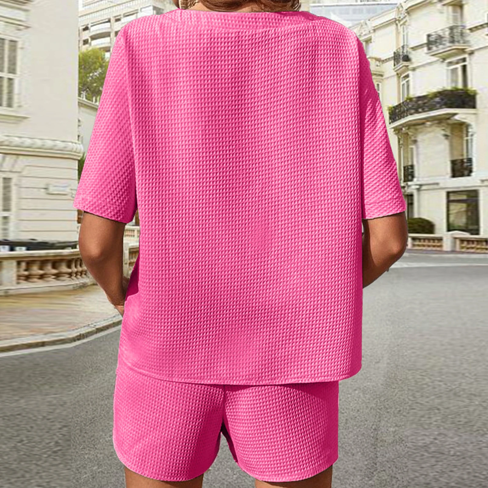 4.Easy to Style: With its relaxed and effortless style, this matching leisure set can be easily styled with various accessories and shoes. You can add your personal touch by pairing it with sneakers for a casual look or dressing it up with heels for a more polished appearance.