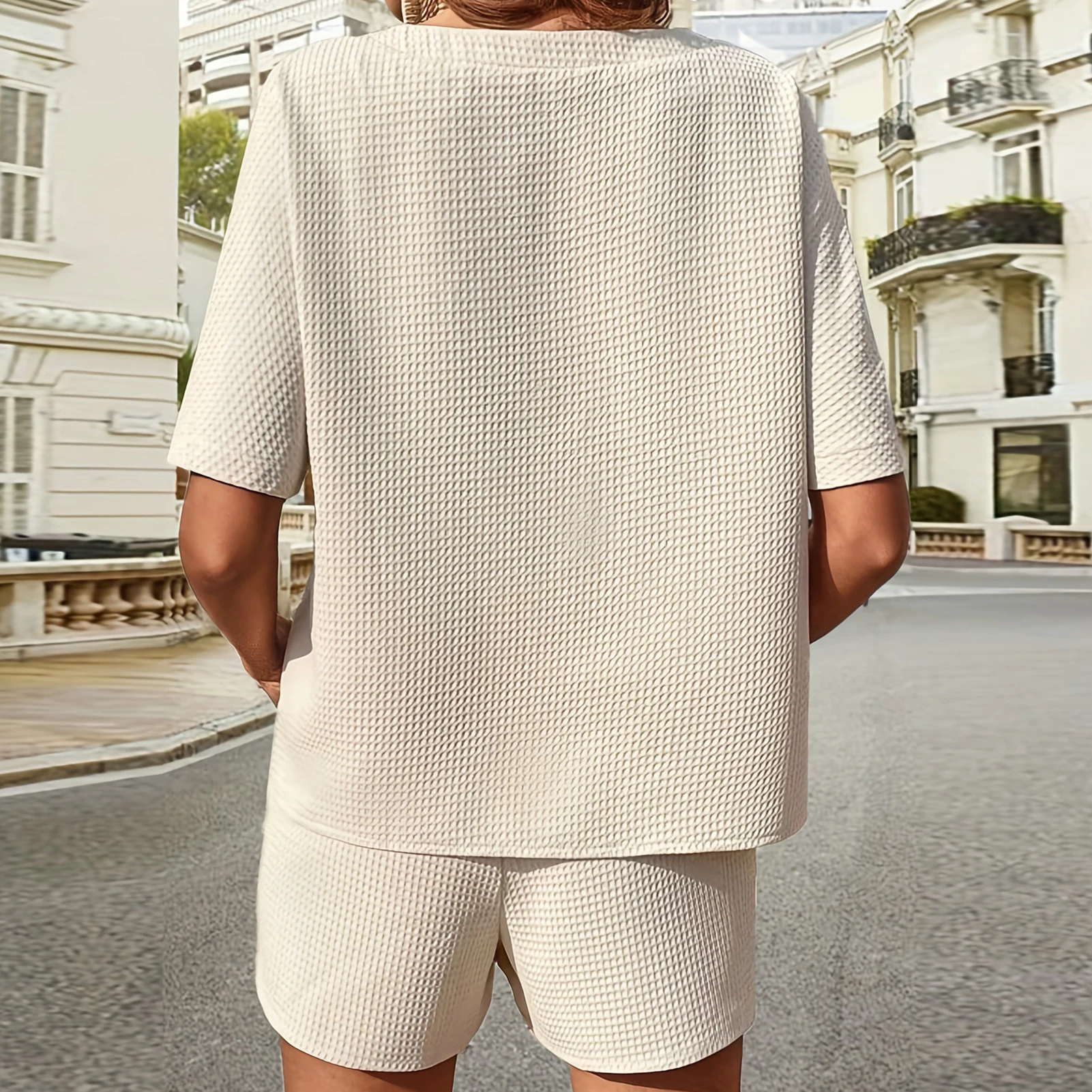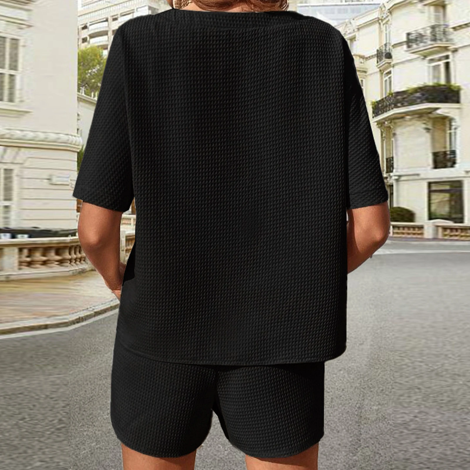1.Casual and Versatile Set: This two-piece set is designed for casual and versatile wear. The loose fit and simple style make it easy to mix and match with other items. The batwing sleeve top and plaid shorts create a fashionable and laid-back look.