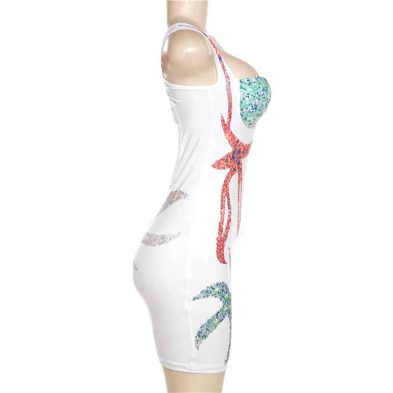 Adogirl 3D Diamonds Print Starfish Mini Dress 2023 Summer Women Sexy Spaghetti Straps Backless Bodycon Night Clubwear Party Robe