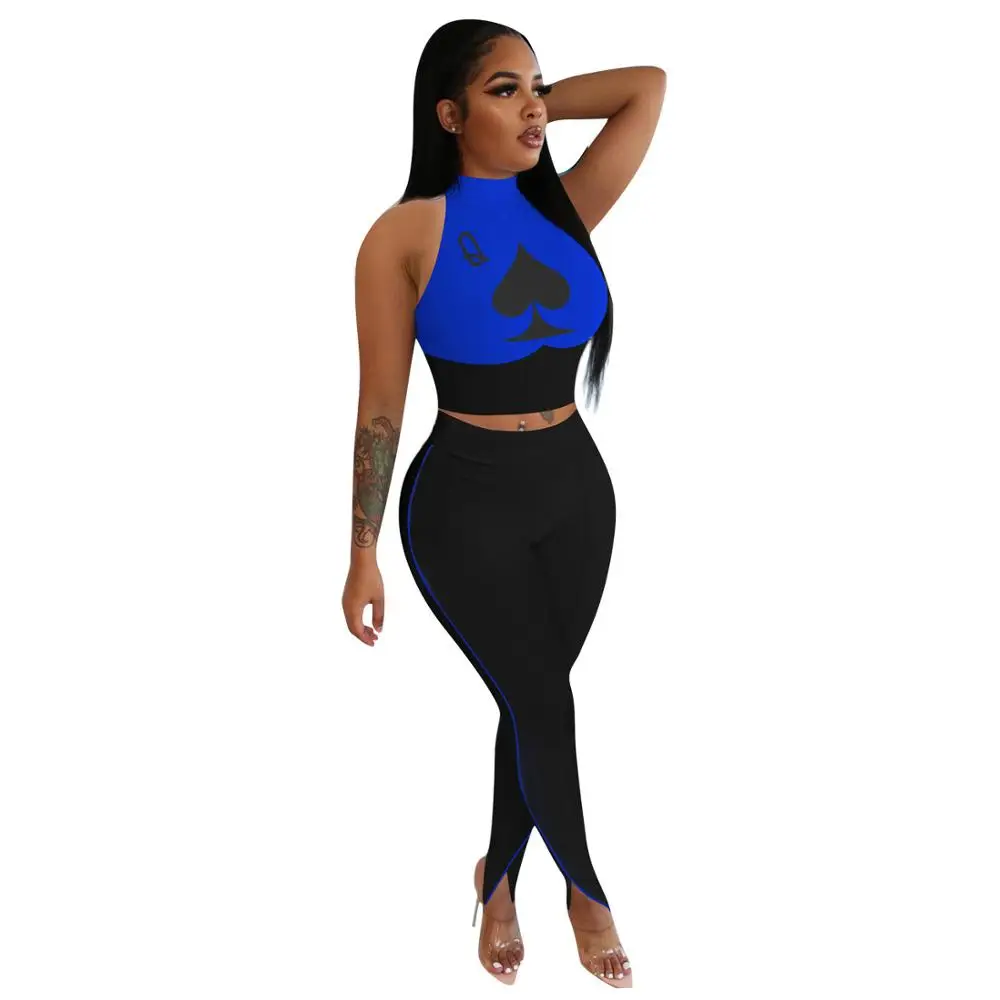 Specification: Adogirl Black Queen Poker Print Women Set Tee Top Split Flare Jogger Sweatpant Suits Fashion Sport Two Pieces Set Tracksuits