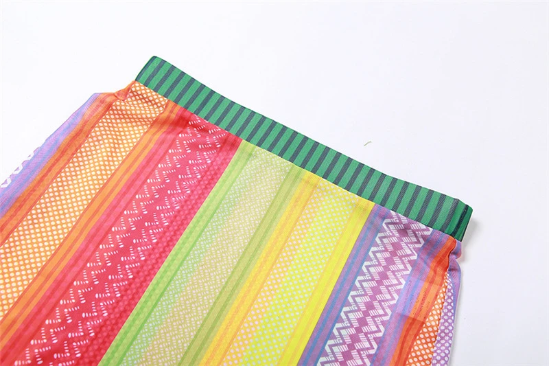 Adogirl Colorful Stripe Sheer Mesh Two Piece Set Dress Woomen Sleeveless Tank Top Bodycon Mini Skirt Sexy Night Clubwear Suits