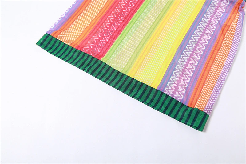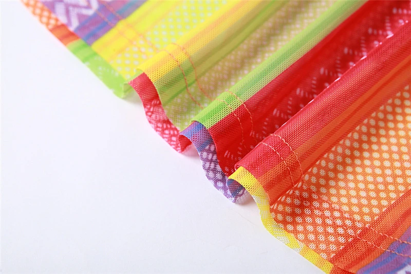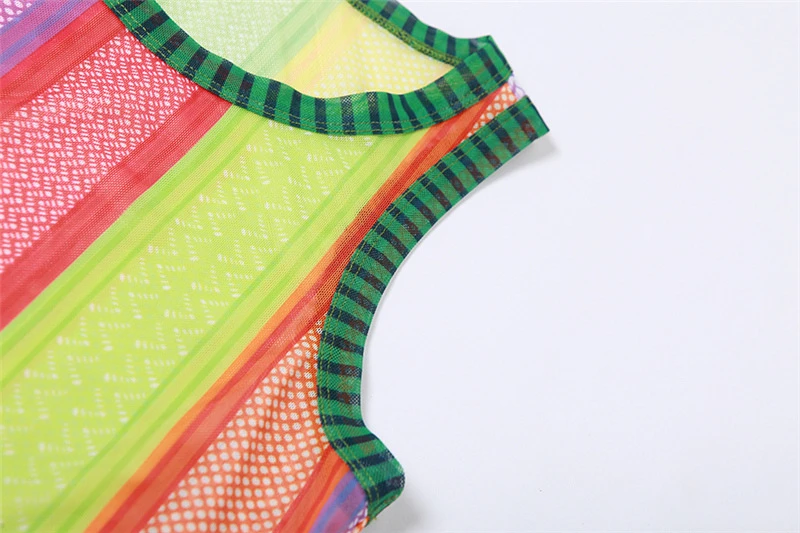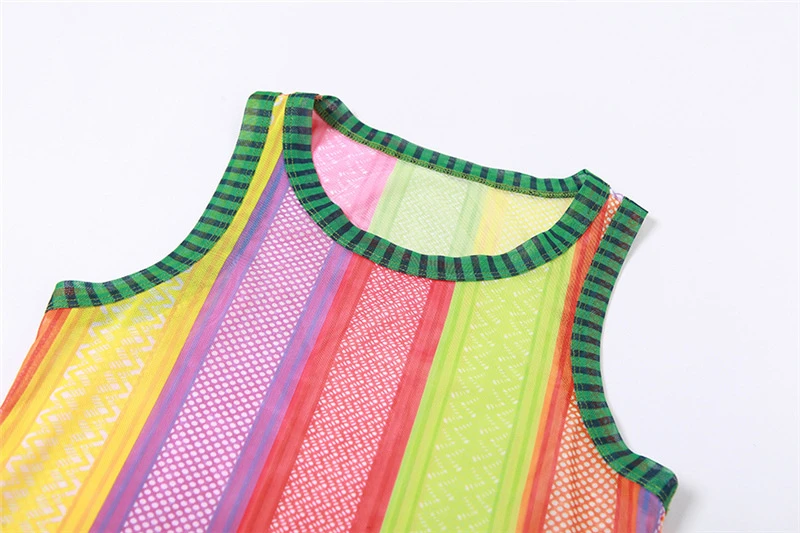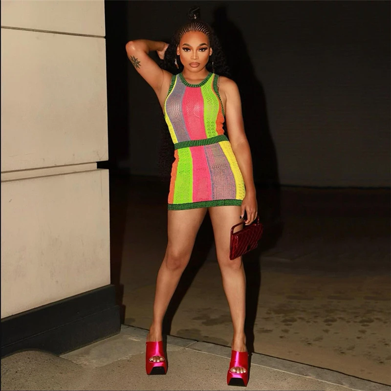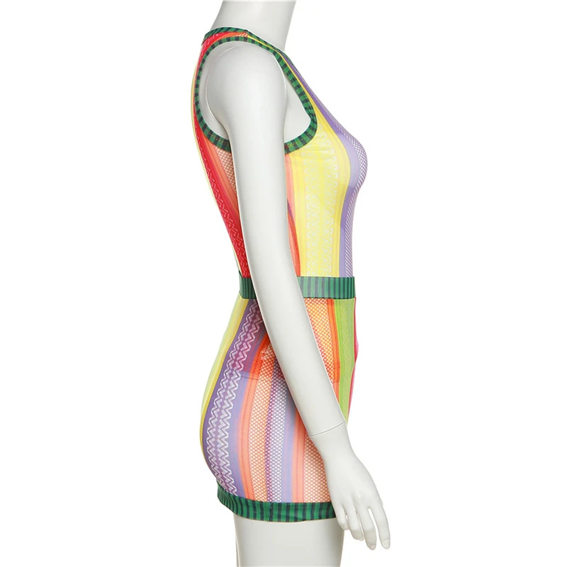Specification: Adogirl Colorful Stripe Sheer Mesh Two Piece Set Dress Woomen Sleeveless Tank Top Bodycon Mini Skirt Sexy Night Clubwear Suits
