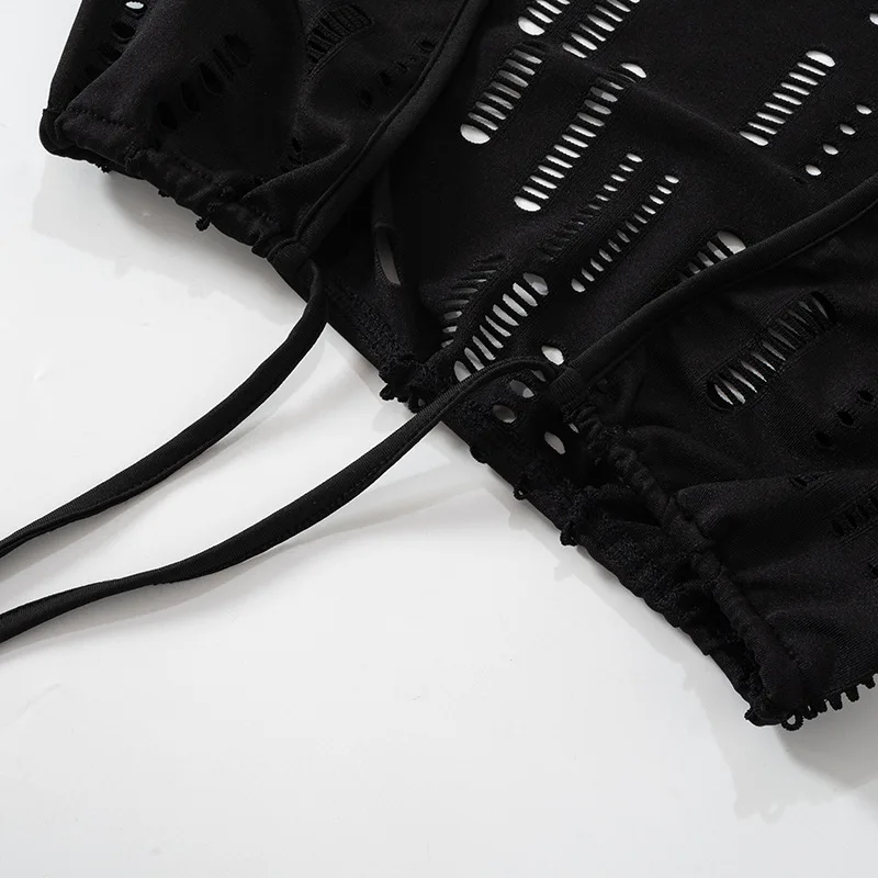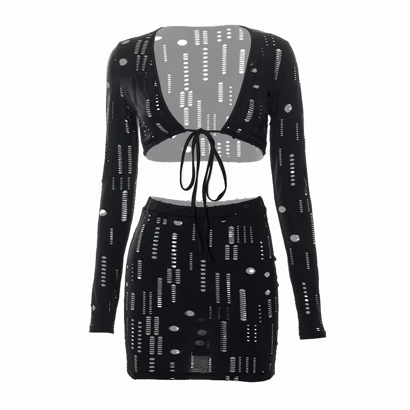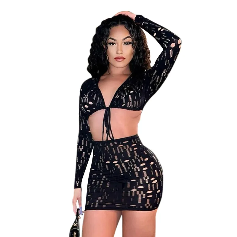 Specification: Adogirl Hollow Out Two Piece Set Dress Women Sexy Drawstring Lace Up Long Sleeve Crop Top Bodycon Mini Skirt Club Party Outfits