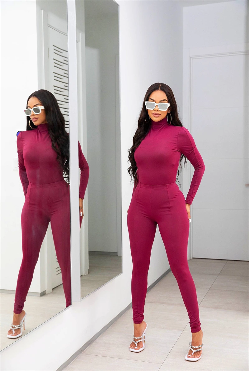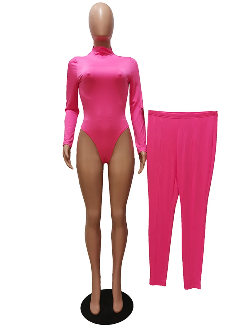 Specification: Adogirl Solid Stretchy Two Piece Set Women Jogger Suits Turtleneck Long Sleeve Bodysuit Top Leggings Pants Autumn Tracksuits