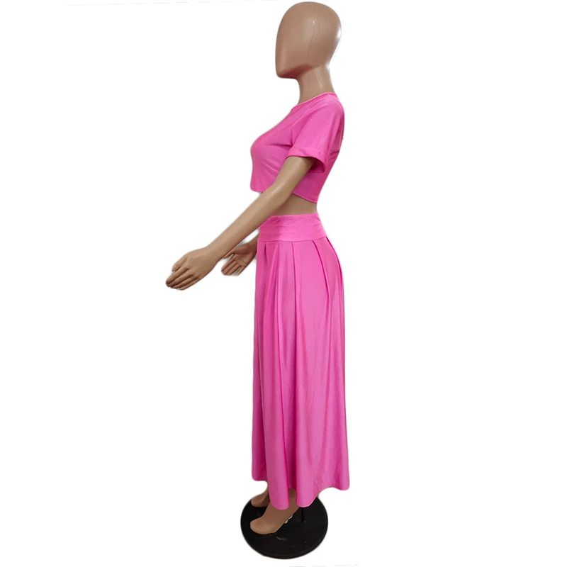 Specification: Adogirl Solid Two Piece Set Dress Women Summer Outfits O Neck Short Sleeve Crop Top High Split Maxi Pleated Skirt Party Suit