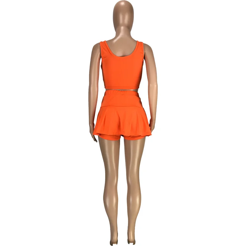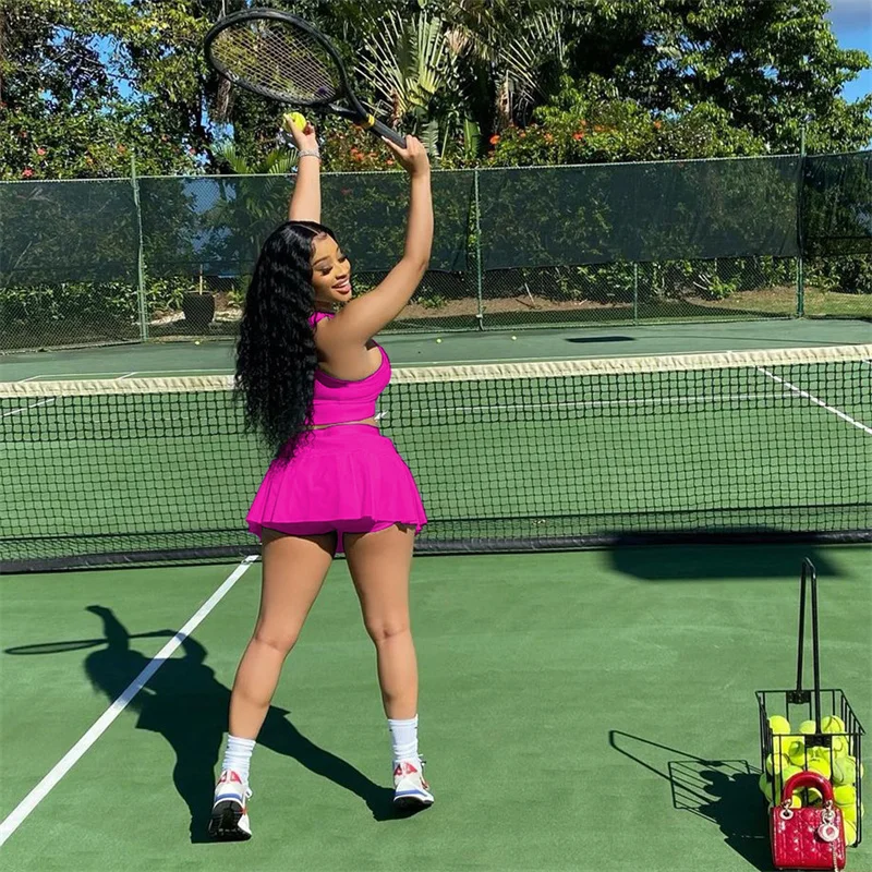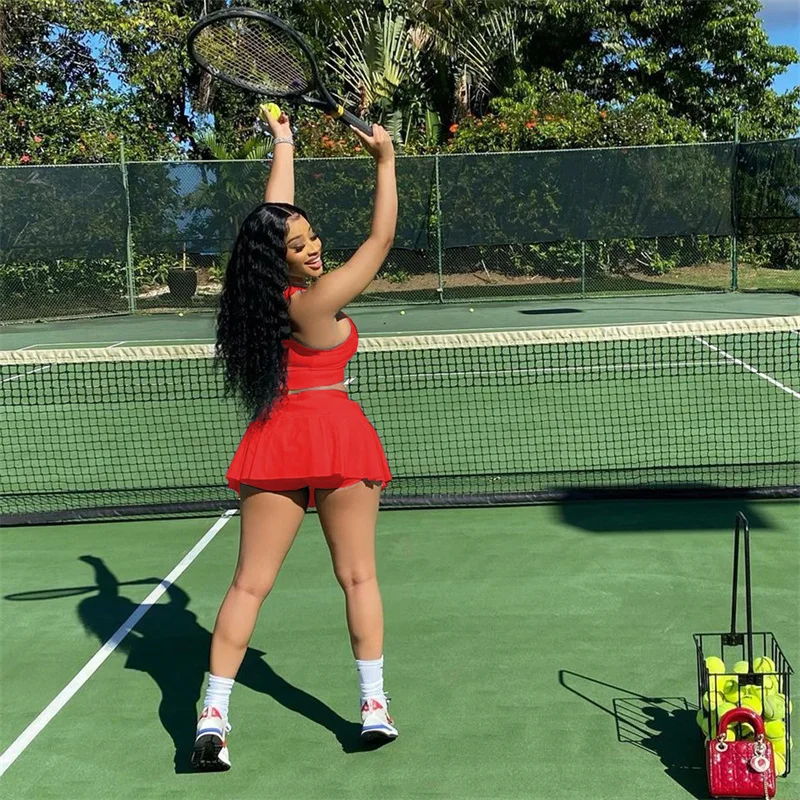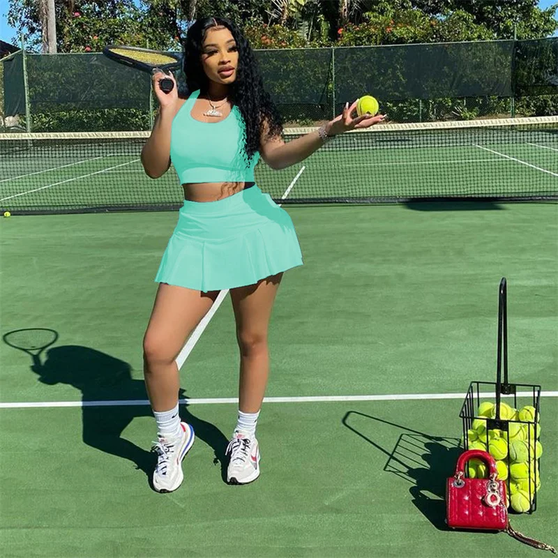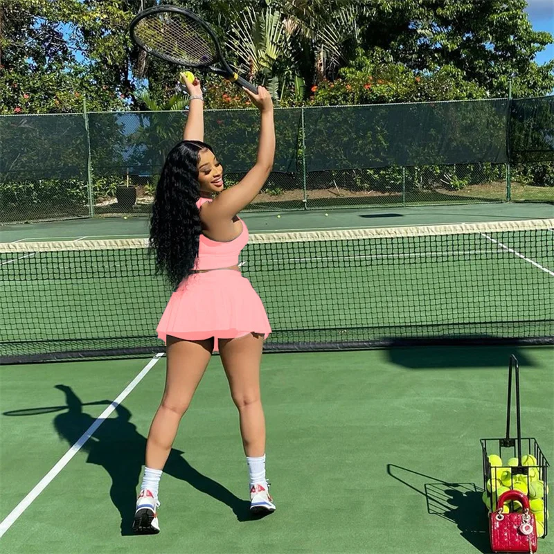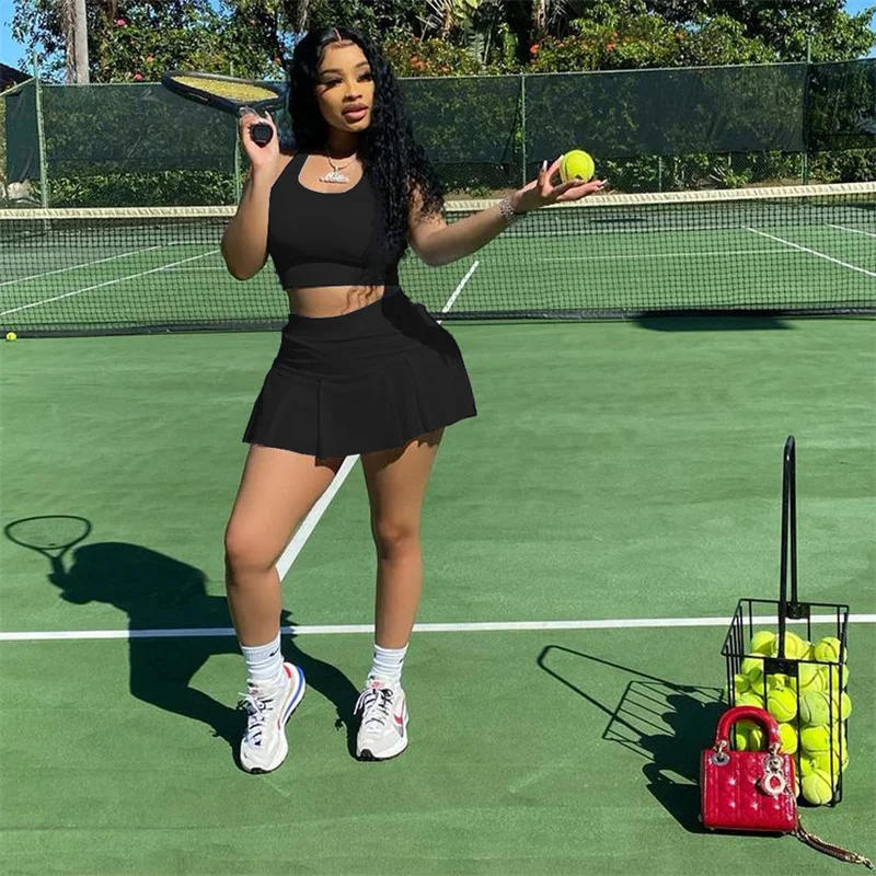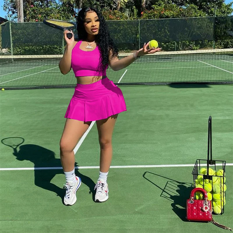 Adogirl Women Tennis Suit Fashion Sexy Vest Crop Top Shorts Skirts Two Piece Set Slim Tracksuit Sporty Team Outfits Customized