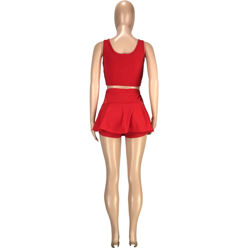 Specification: Adogirl Women Tennis Suit Fashion Sexy Vest Crop Top Shorts Skirts Two Piece Set Slim Tracksuit Sporty Team Outfits Customized