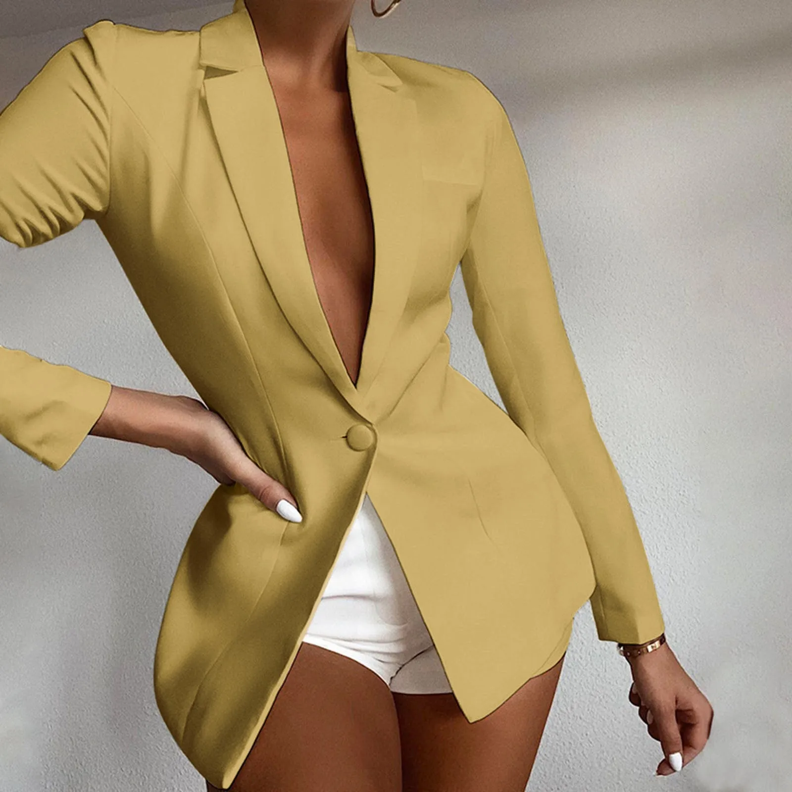 Women’s Fashion Long Sleeve Lapel Button Down Jacket Work Office Jacket