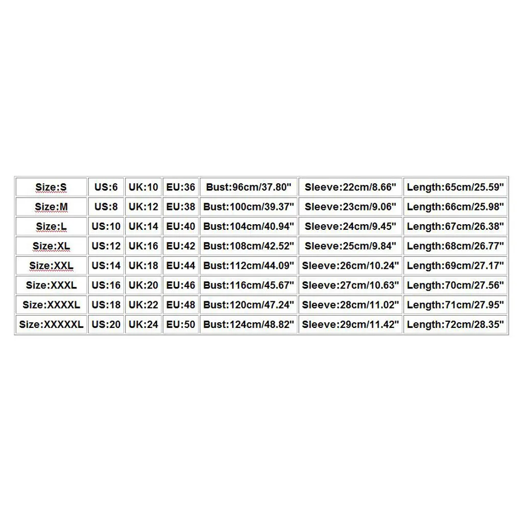 | Size | US | UK | EU | Bust | Sleeve | Length |