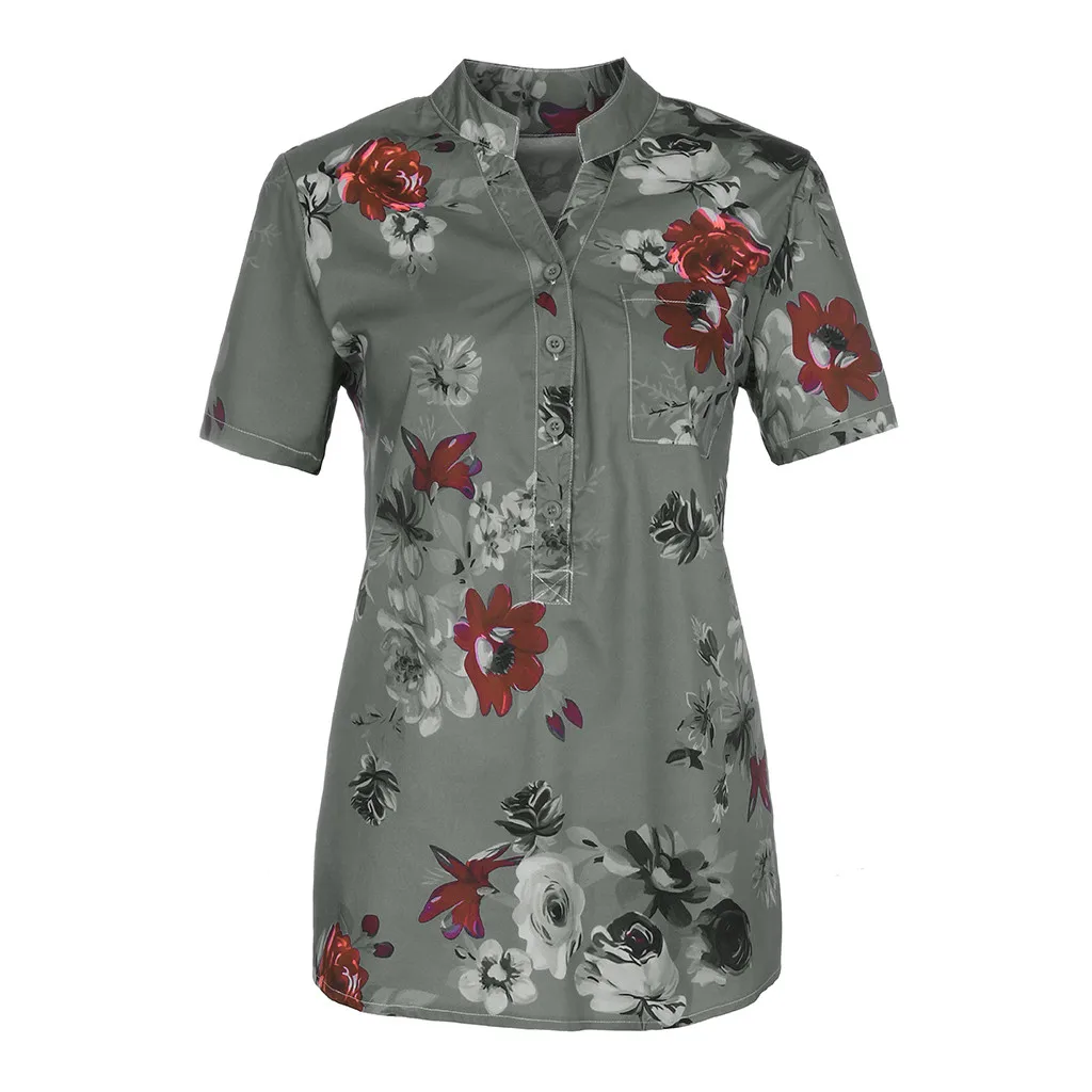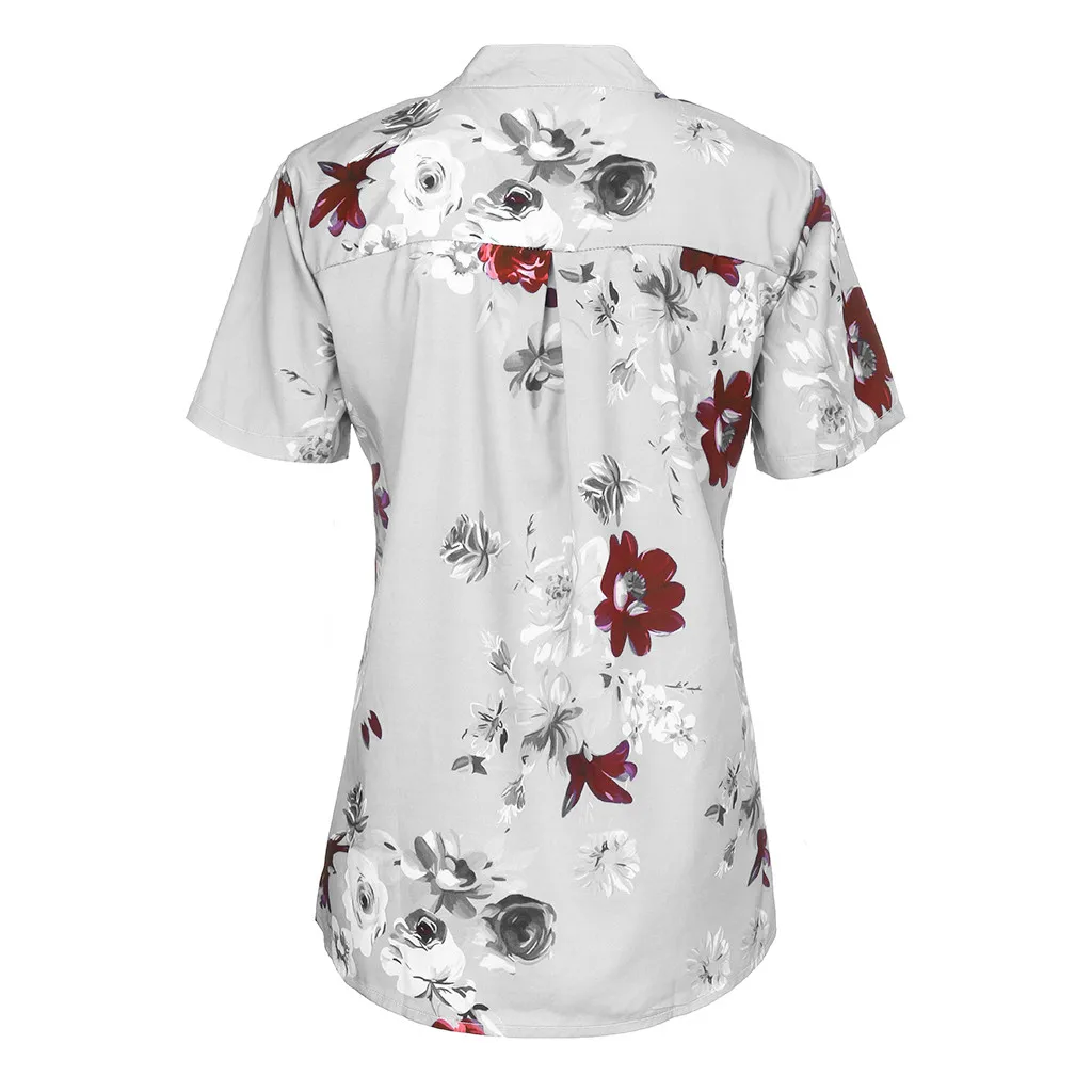Boho Women’s Tunic Floral Printing Shirt Pocket women 2020 blouses Short Sleeve Blouse Easy Top Shirt Plus Size Blusa Feminina