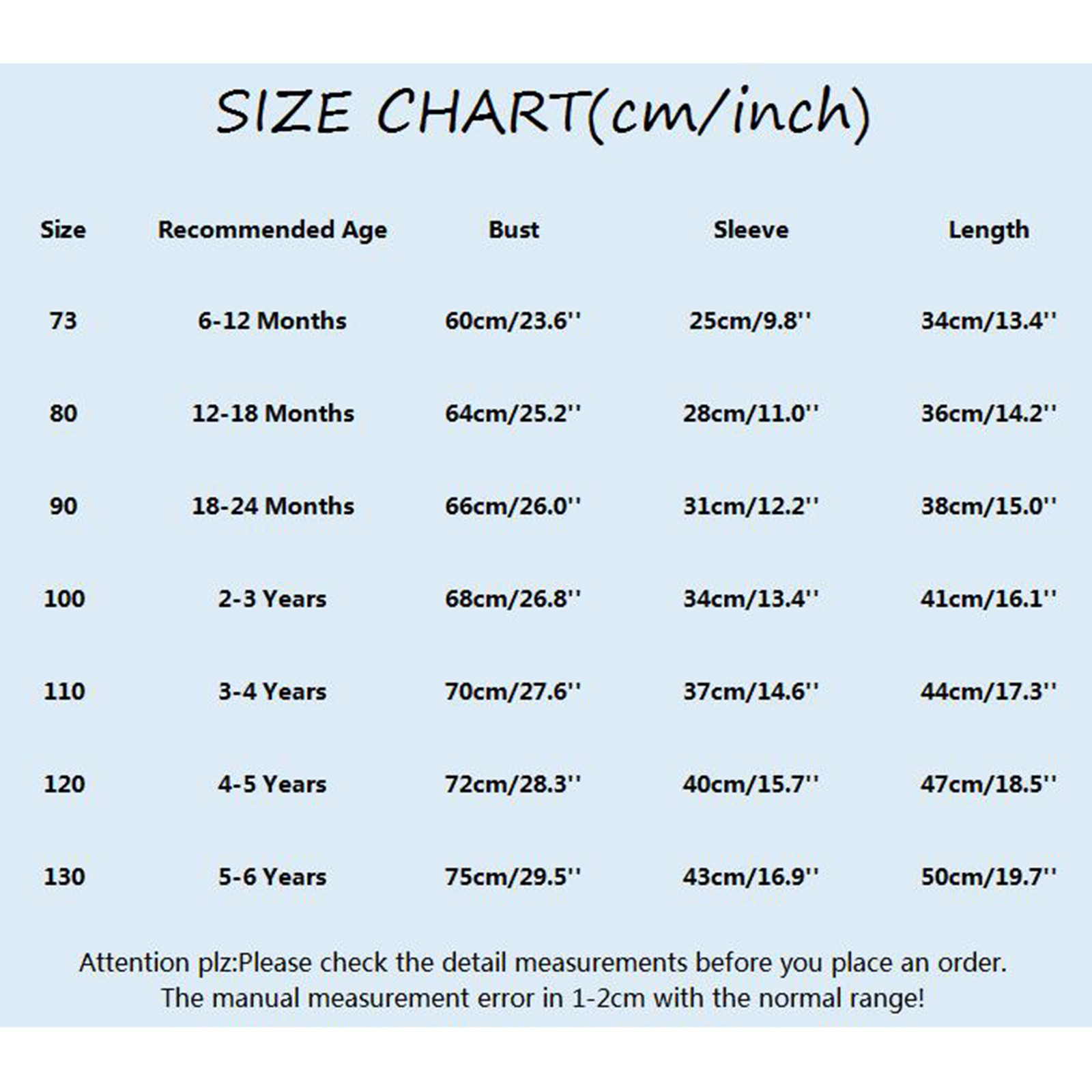 Size:100 | Recommended Age:2-3 Years | Bust:68cm/26.8” | Sleeve:34cm/13.4” | Length:41cm/16.1” |