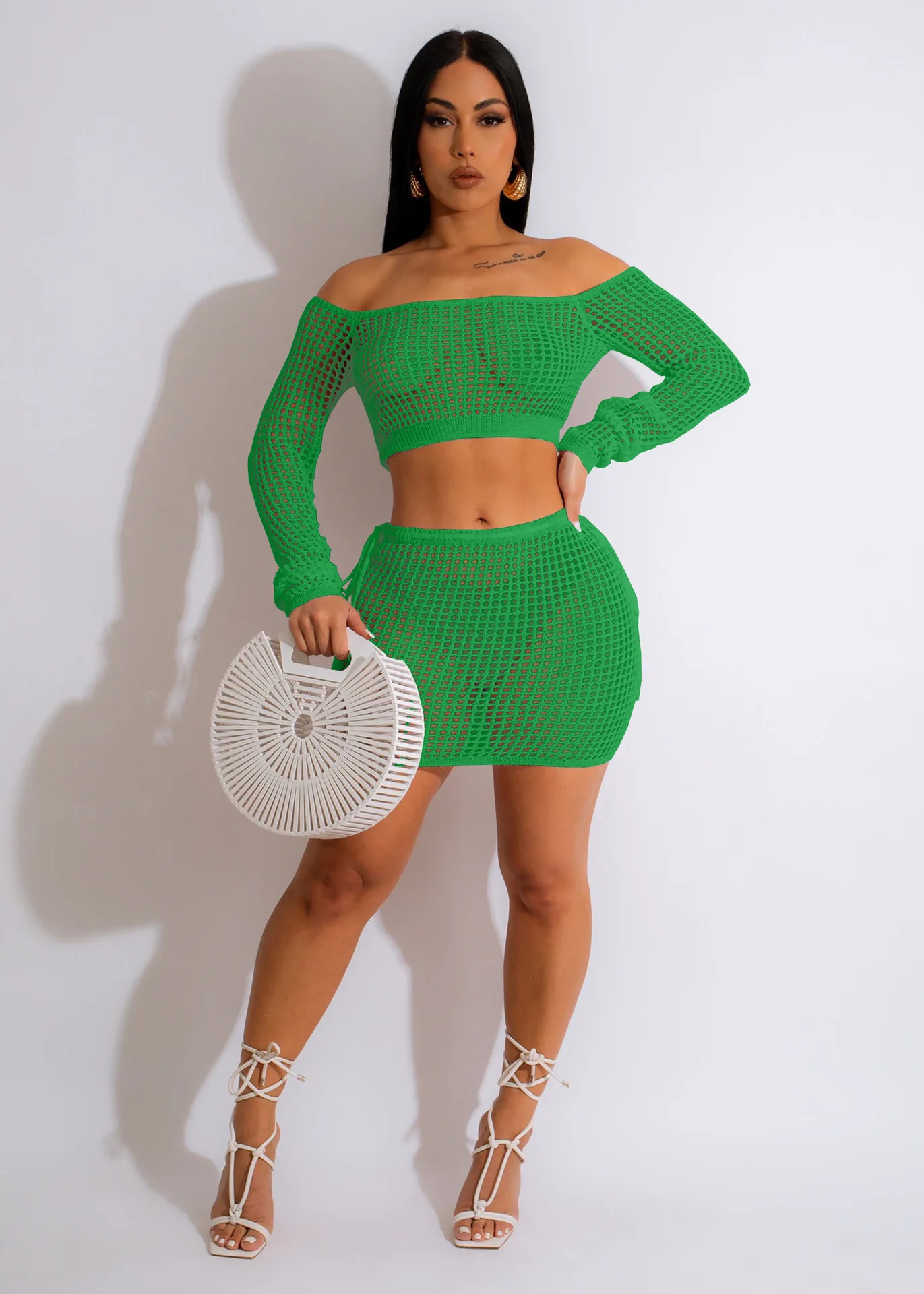 Specification: Casual Women Skirt Tracksuit Two Piece Set Slash Neck Dresses Set Hollow Out See Through Summer Beach Clothes Suit Outfit