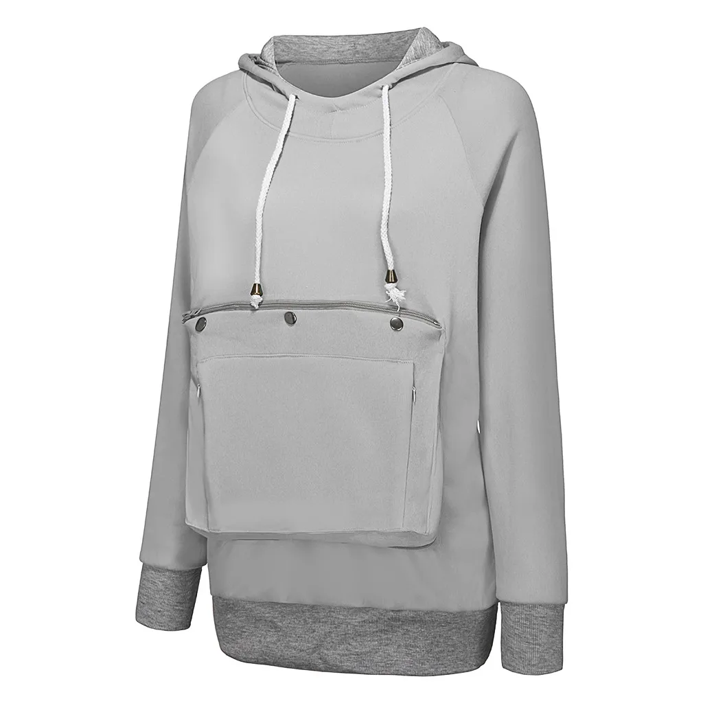 Women Solid Long Sleeve Pet Big Pockets Velvet Hoodies Pullovers Sweatshirt Top