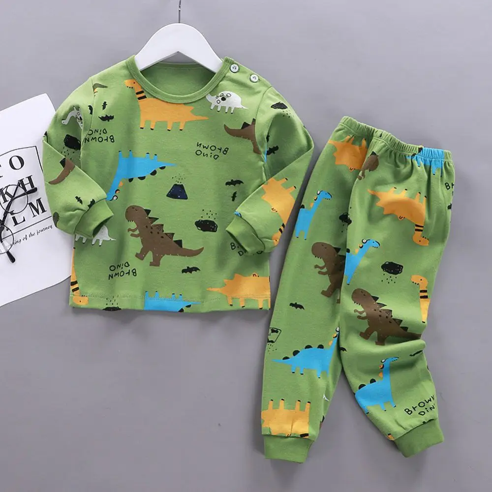 Children Boys Girls Pajamas Set 0-5T Long Sleeve Pullover Tops+Pants Toddler Pyjamas Set Autumn Winter Cotton Sleeping Clothes
