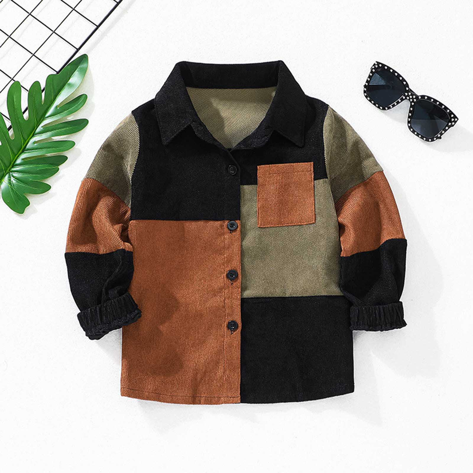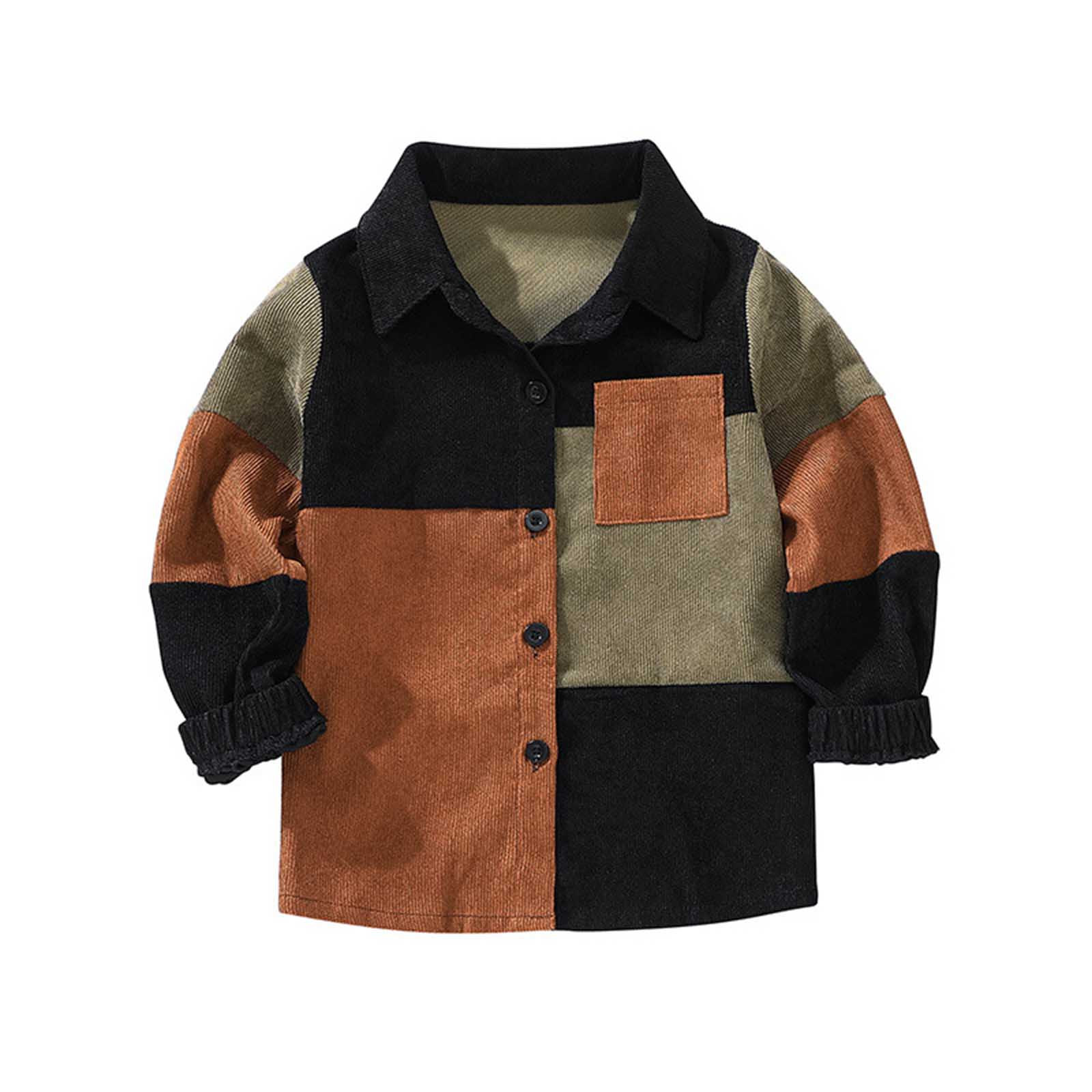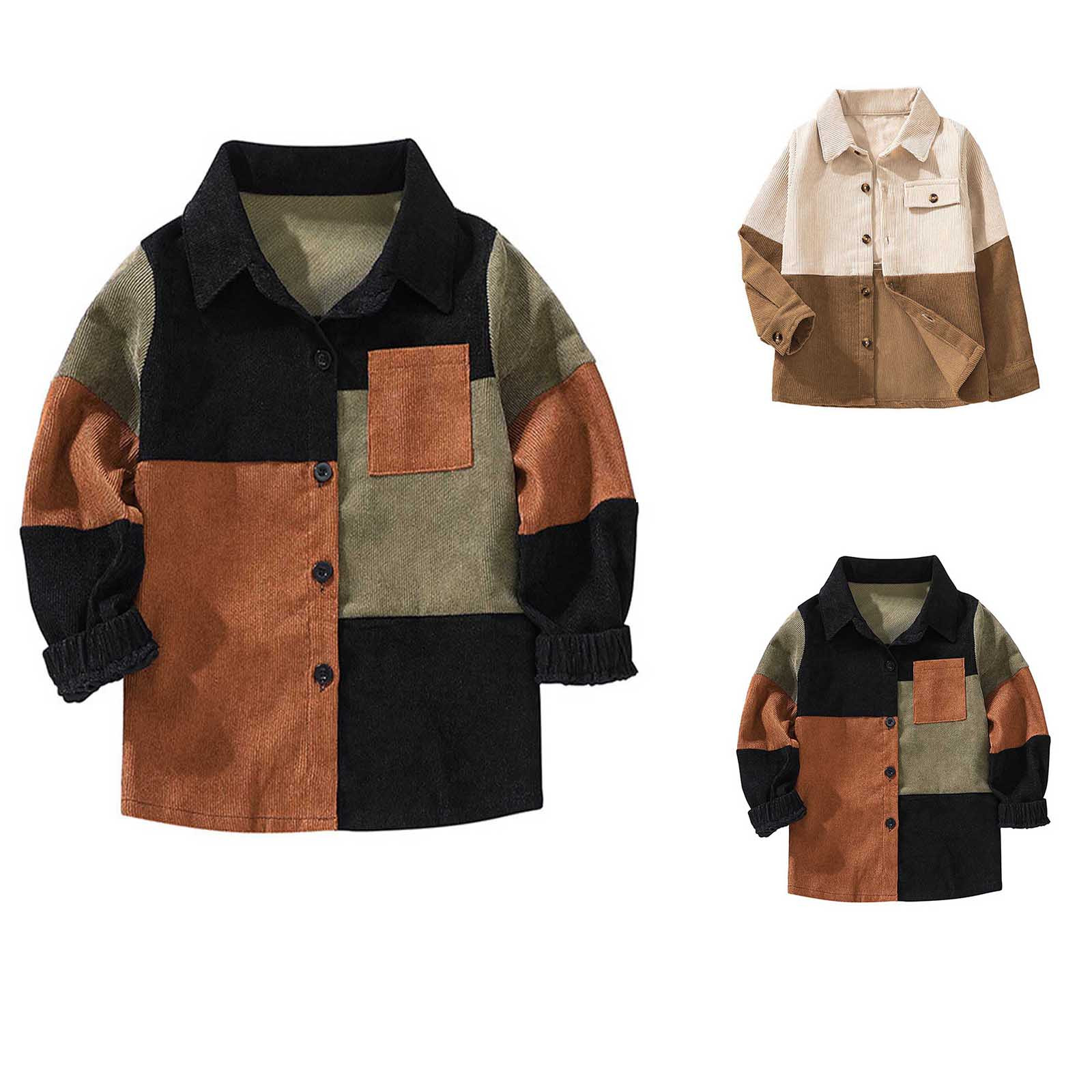 Children Toddlers Patchwork Shirts Jackets Plaid Long Sleeves Lapel Buttons Baby Boys Boys Autumn Shirts Coats Winter Coats