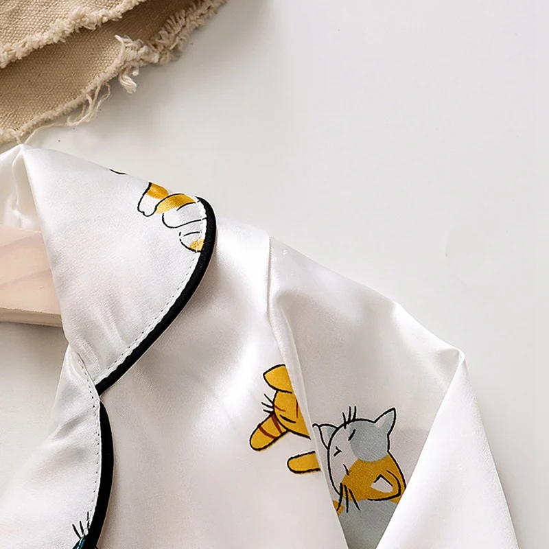 Casual short sleeve Cartoon kitten pattern sleepwear blouse Long set, which will make your kids look cool and attractive