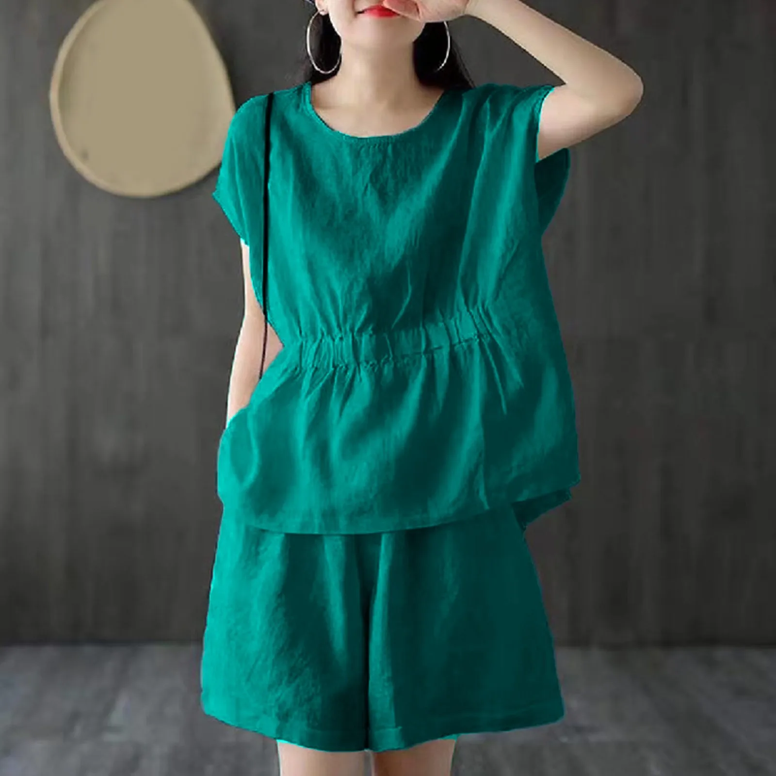 Specification: Cotton Linen Sets Short Sleeve Tops and Shorts Suits Women Clothes Two Pieces Sets Homewear Female Loose Tracksuit Outfits 2023