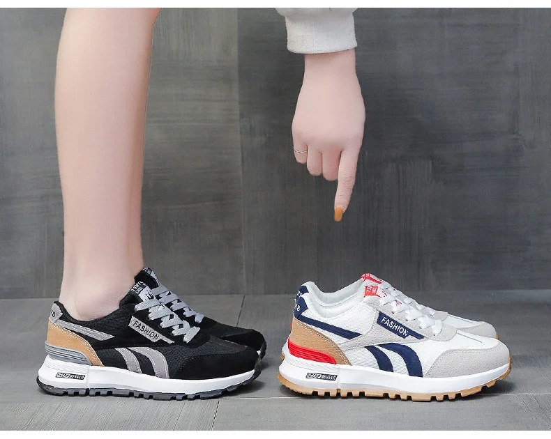 Specification: Couple Walking Shoes Womens Casual All Seasons Sport Shoes Leather Mesh Soft Flat Patchwork Stripe Sneakers