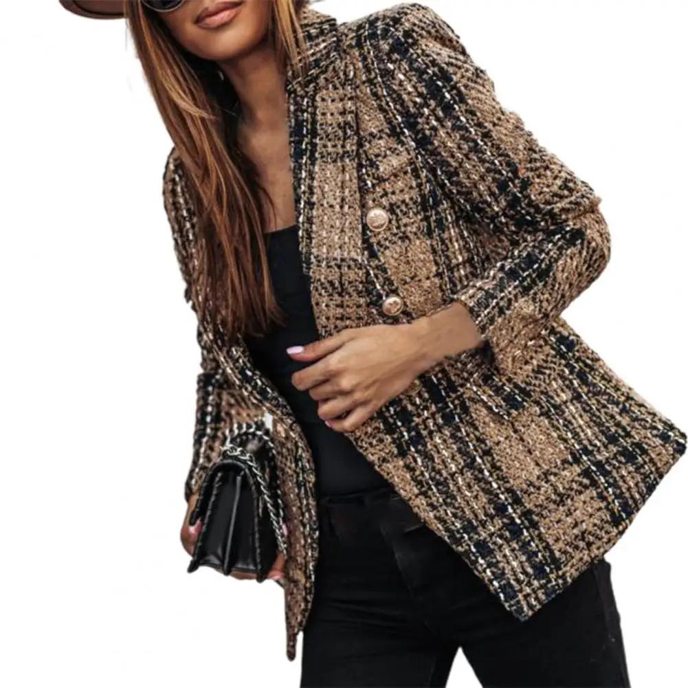Double-breasted Lady Blazer Long Sleeve Woolen Modern Design Winter Lady Coat for Dating