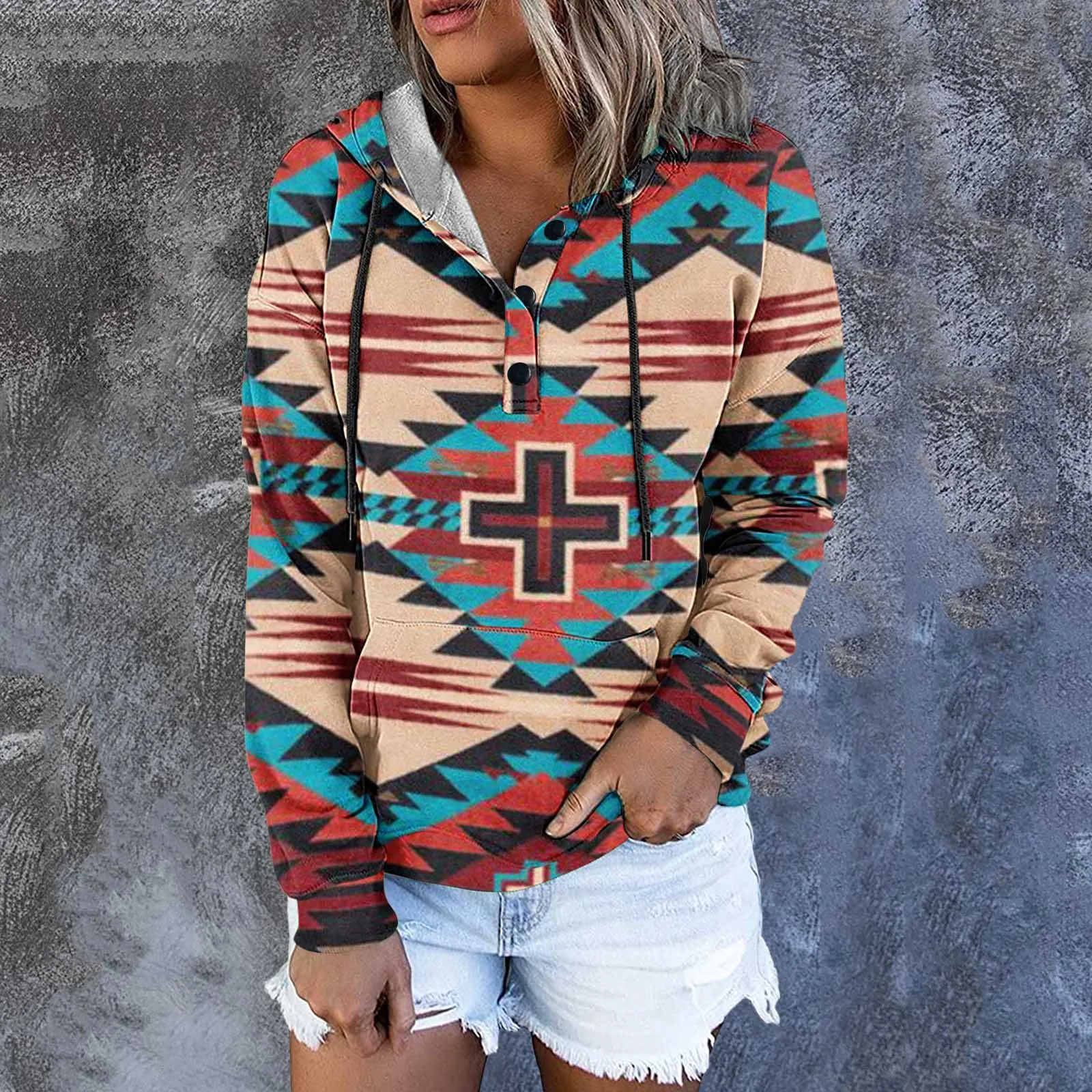 Ethnic Style Hoodies Women Casual Sweatshirts Aztec Print Autumn Ladies Down Down Pullover Long Sleeve Loose Top Female Sudadera