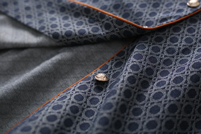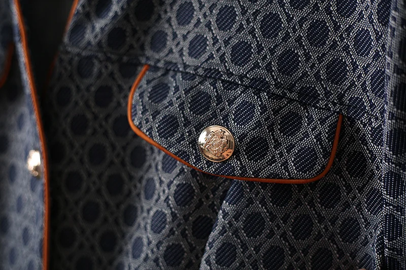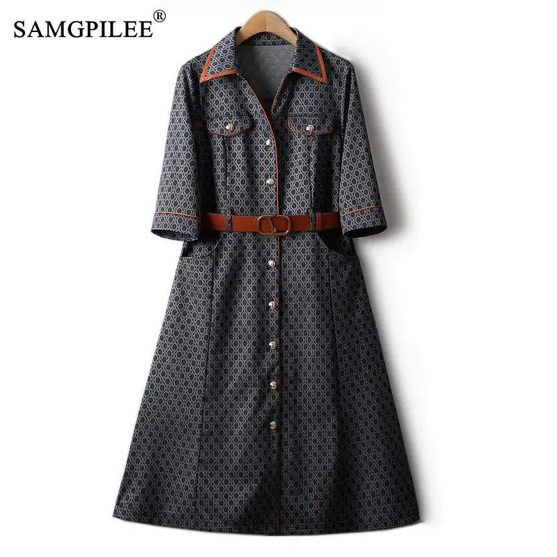 Specification: European Station Printed Denim Blue Dress Women 2023 Spring Summer Half Sleeve Turn Down Collar PU Belt Stylish Female Dresses