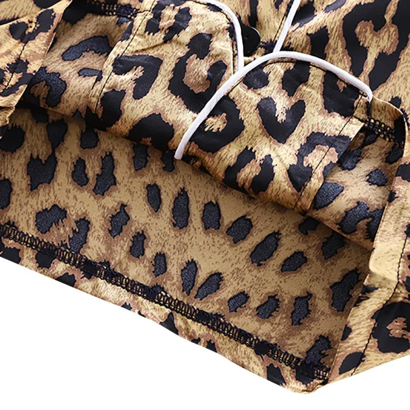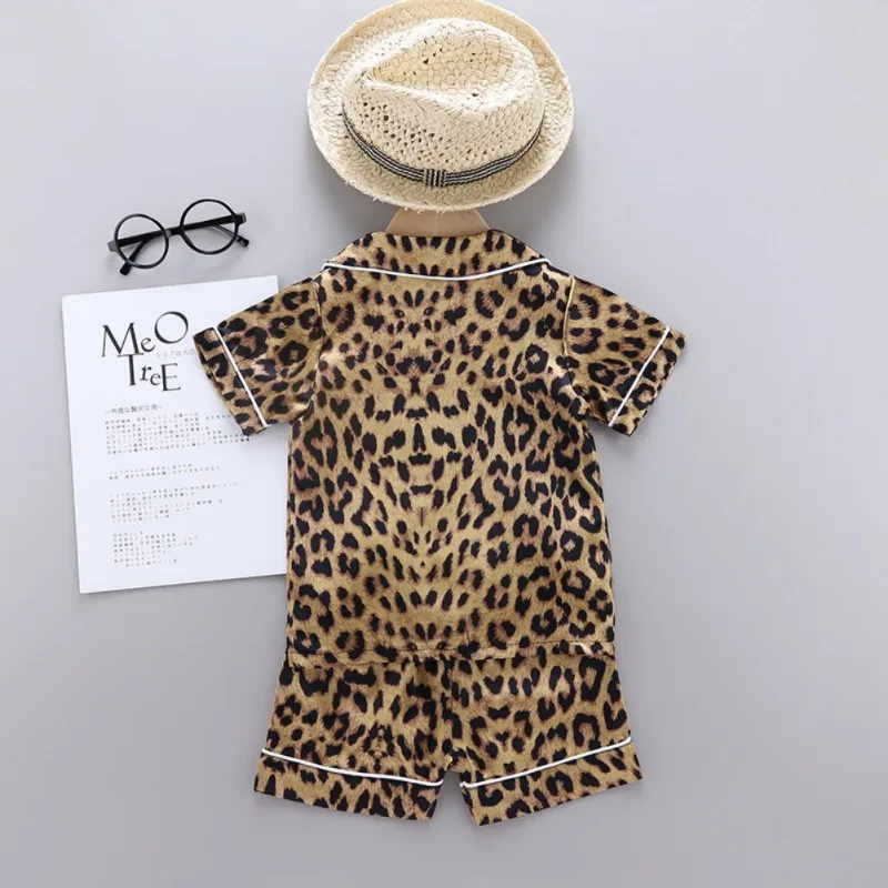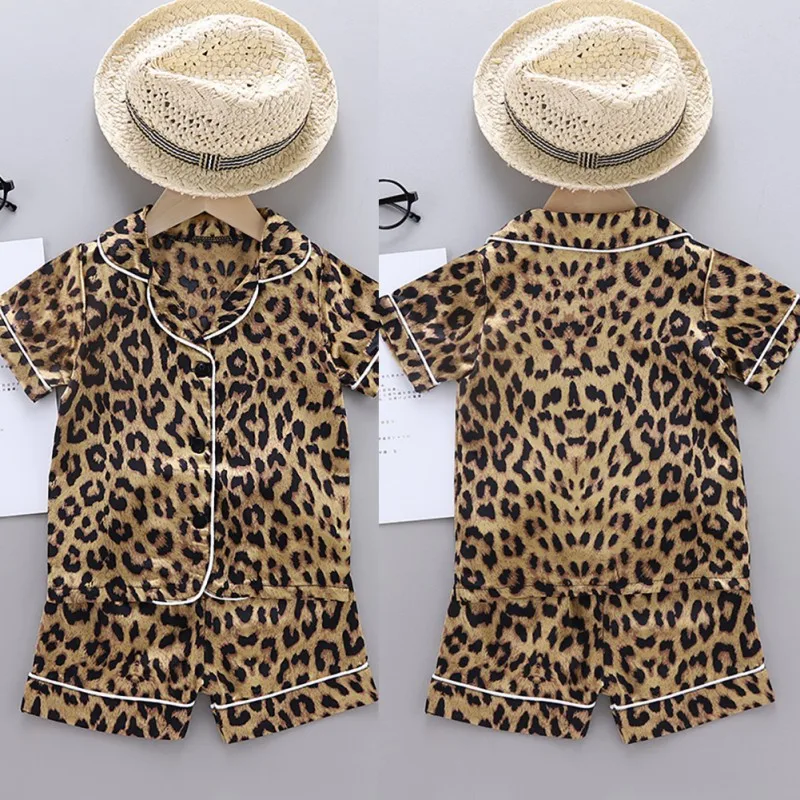Casual short sleeve Leopard pattern sleepwear blouse shorts set, which will make your kids look cool and attractive