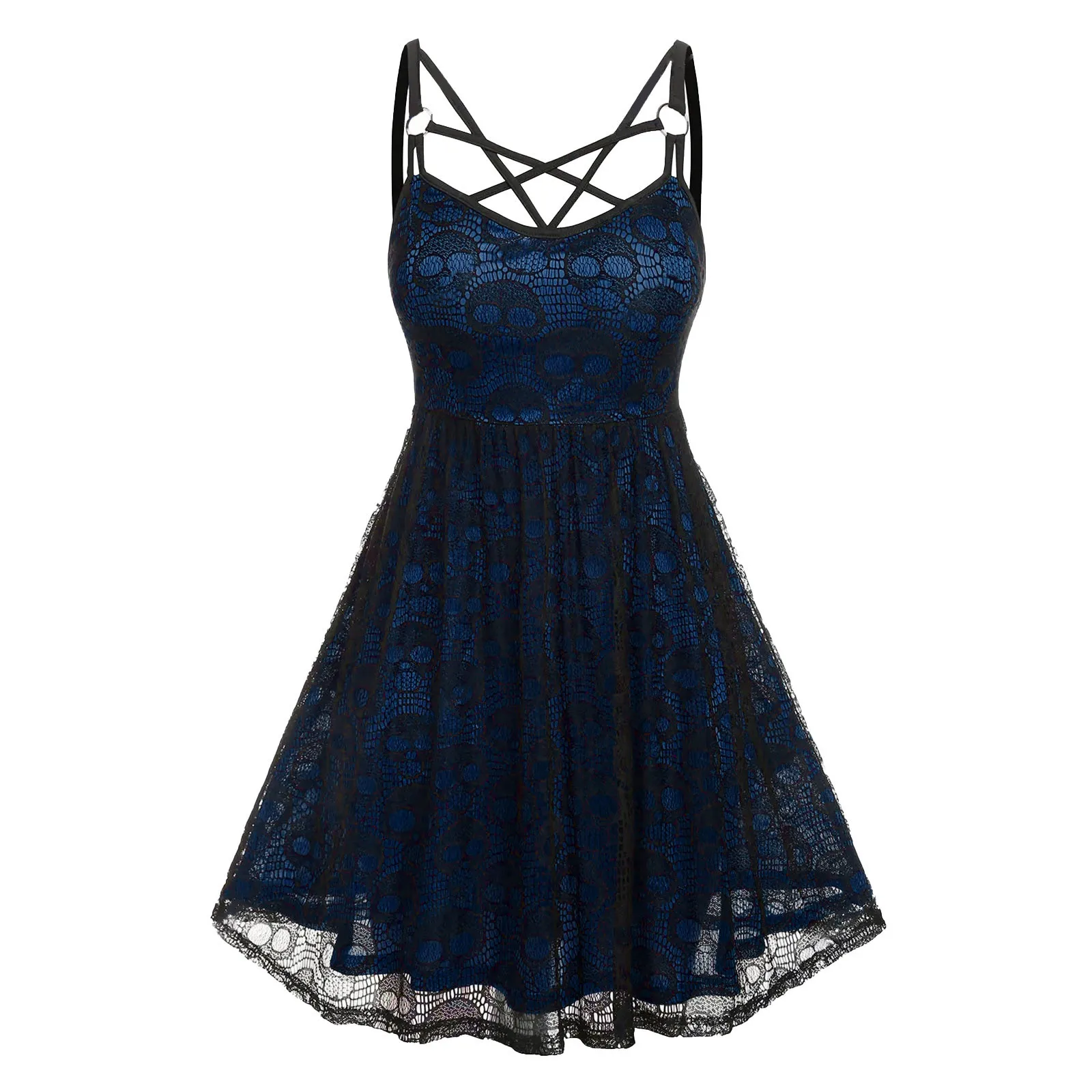 Specification: Gothic Dress For Women Vintage Halloween Skull Dress Cross Sling V Neck Mesh Dresses for Women A-Line Sexy Punk vestido femme