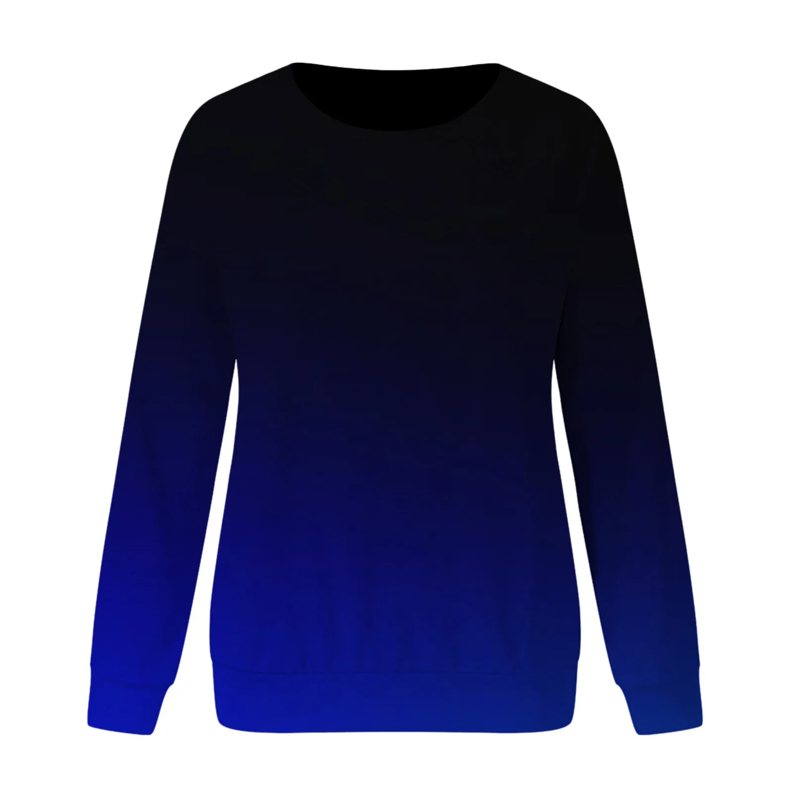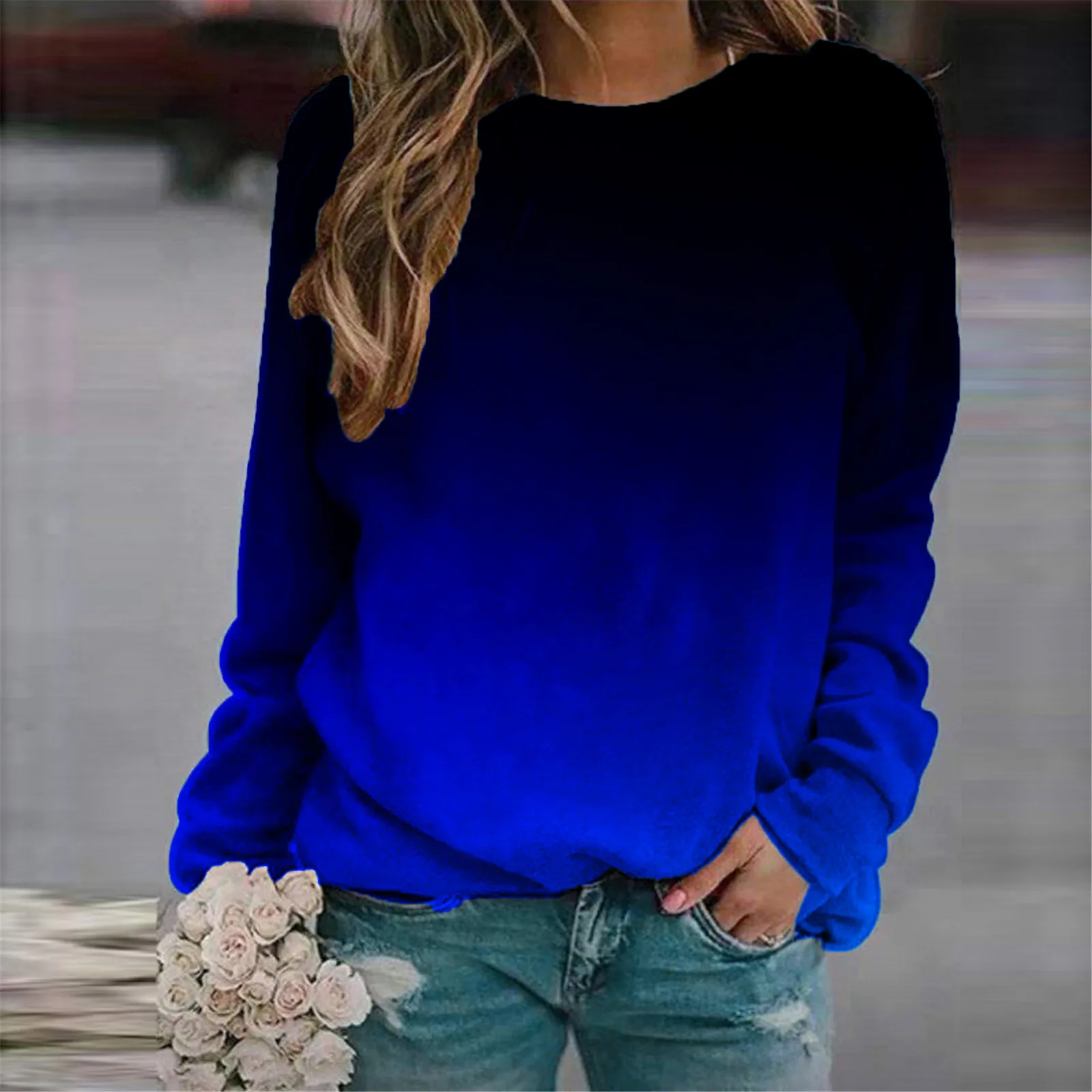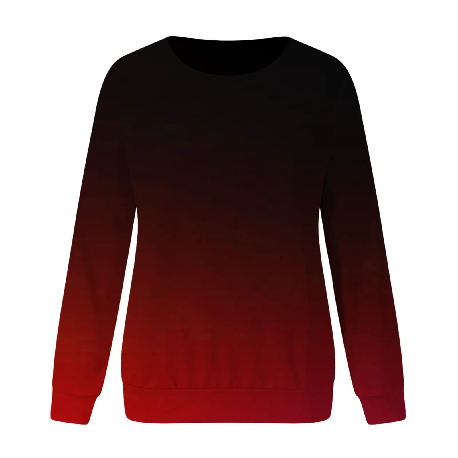 Women Hot-Print Gradient O Neck Sweatshirt Long Sleeve Loose Pullover Blouse Top