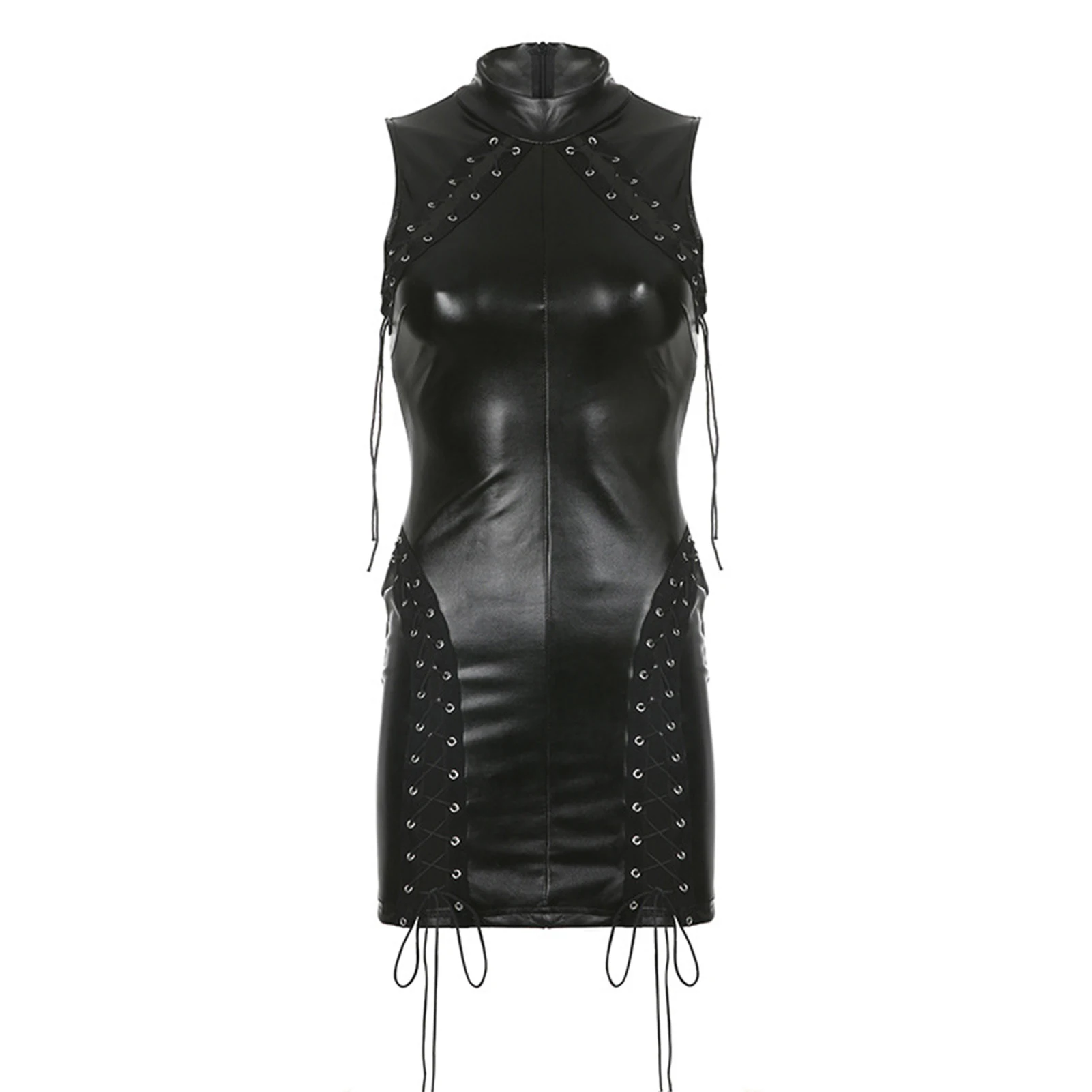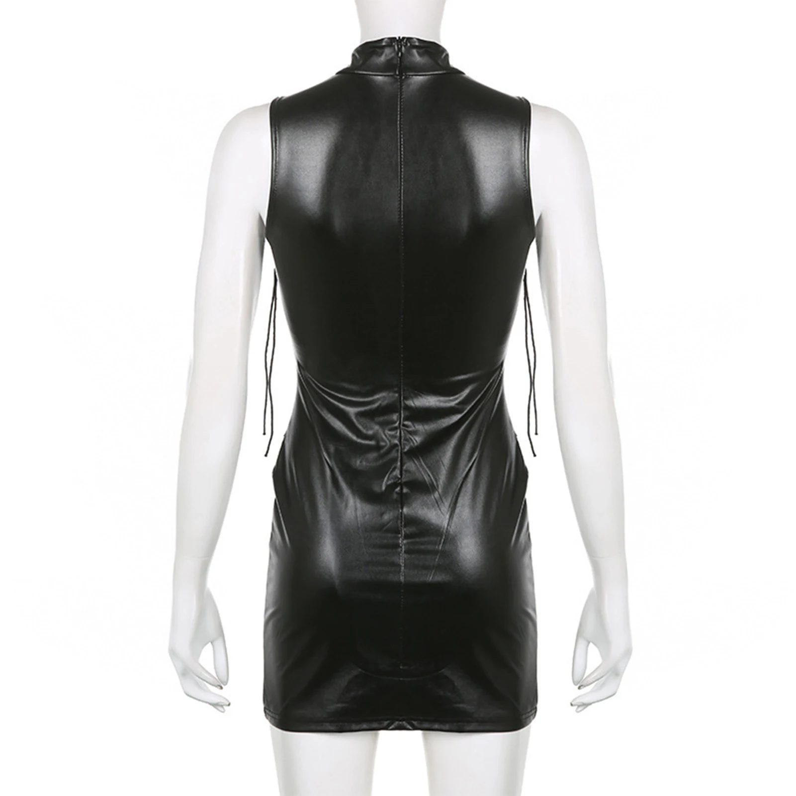 Half High Collar Dress PU Stand Collar Sleeveless Dress Temperament Fashion Comfortable Exquisite for Women Summer Accessories