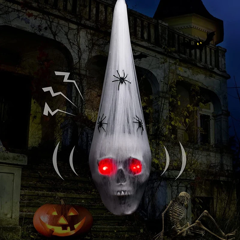 2. Scary Halloween decorations: creepy skulls with red eyes. When there is the sound of walking and talking near the skeleton, the built-in motion sensor will be activated, and the skeleton will cry out in horror.