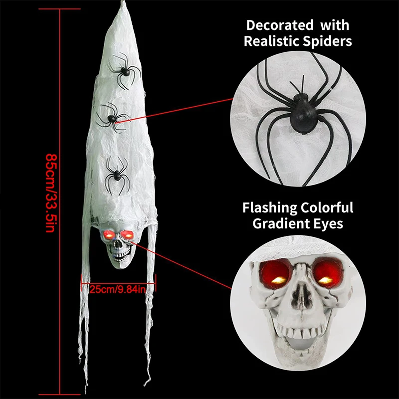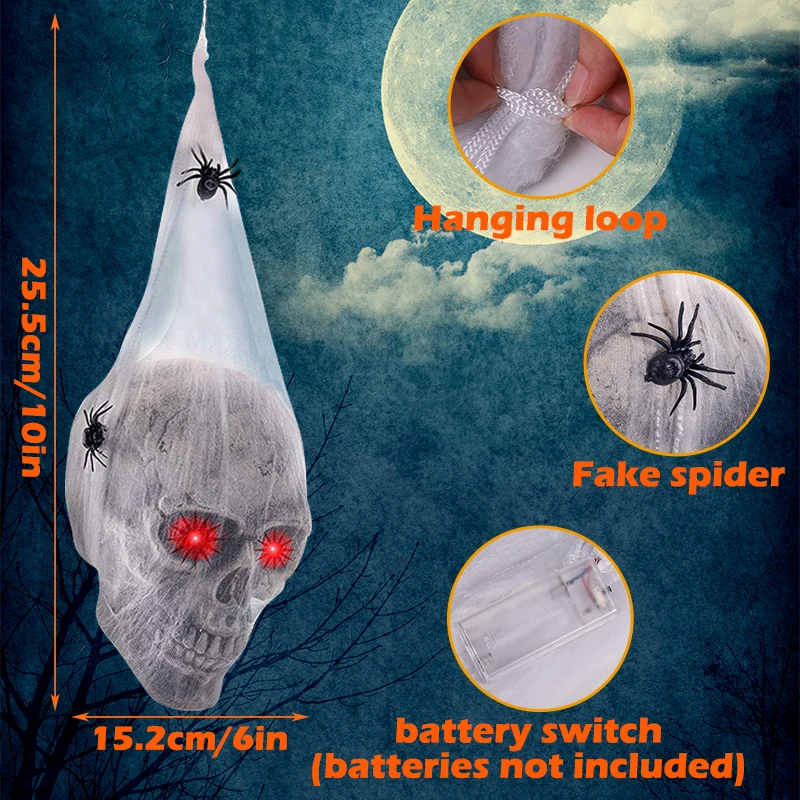 Specification: Halloween Decoration Hanging Skull Head Creepy Horror Outdoor Spider Cotton Glowing Heads Props Haunted House Decor For Party