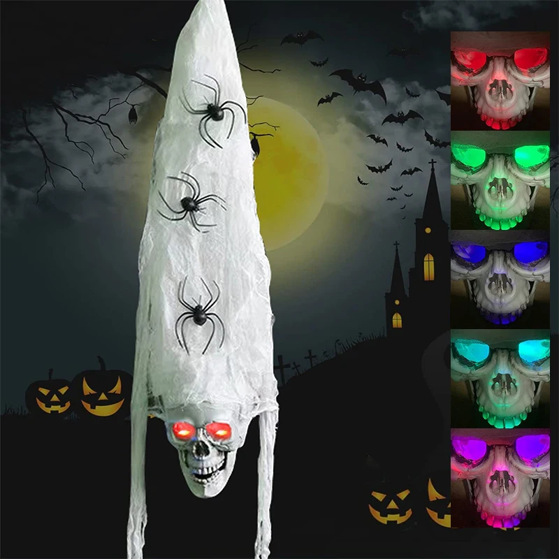 Halloween Decoration Hanging Skull Head Creepy Horror Outdoor Spider Cotton Glowing Heads Props Haunted House Decor For Party