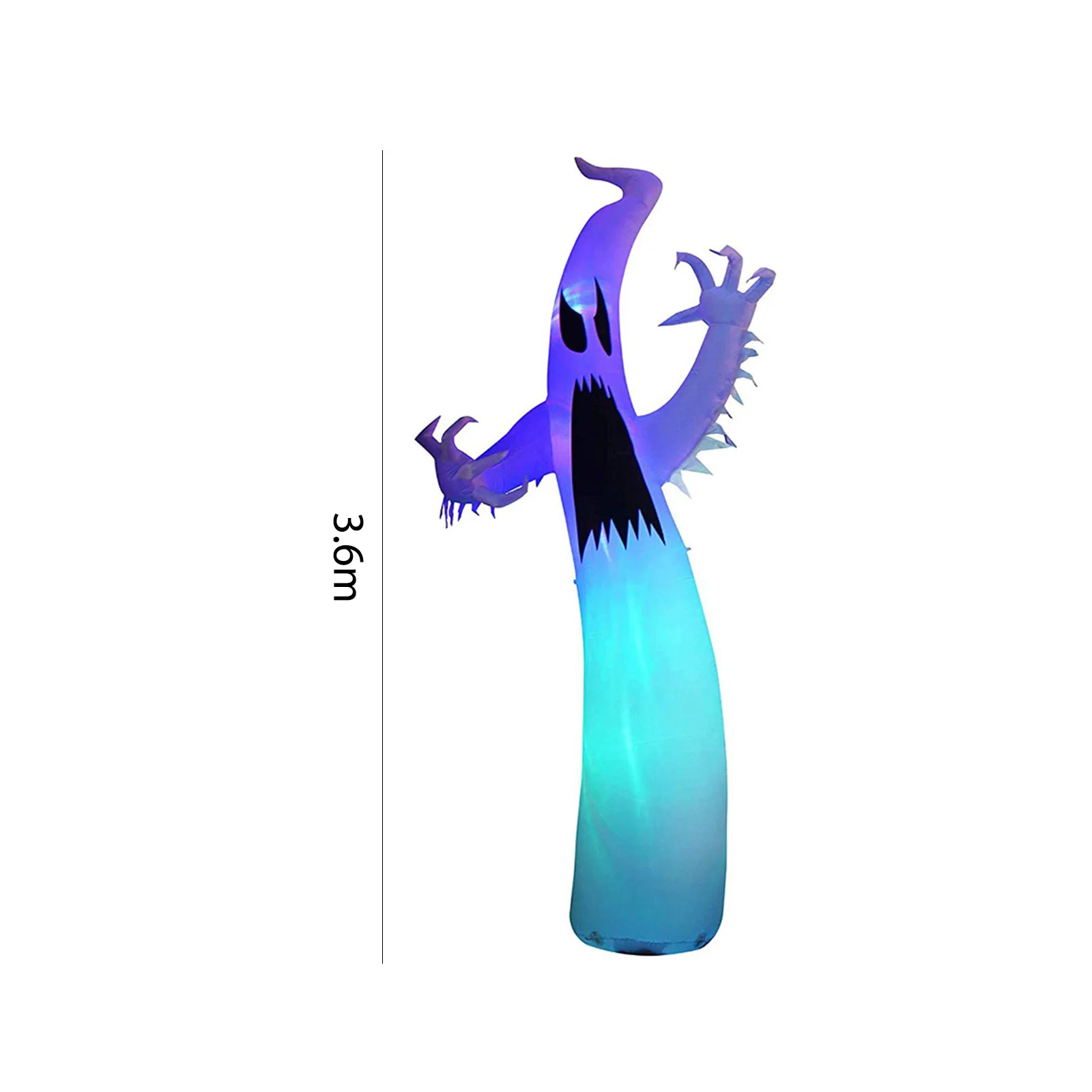 Occasion: Halloween Item: Inflatable white ghost Material: Polyester Size: 3.6m/12ft Color: as shown Plug: US, UK, EU Features: Glow