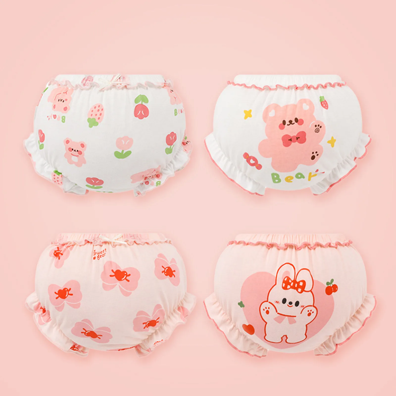 Kids Infant Baby Girls Underpants Cute Print Underwear Shorts Cotton Ruffled Briefs Trunks 4PCS