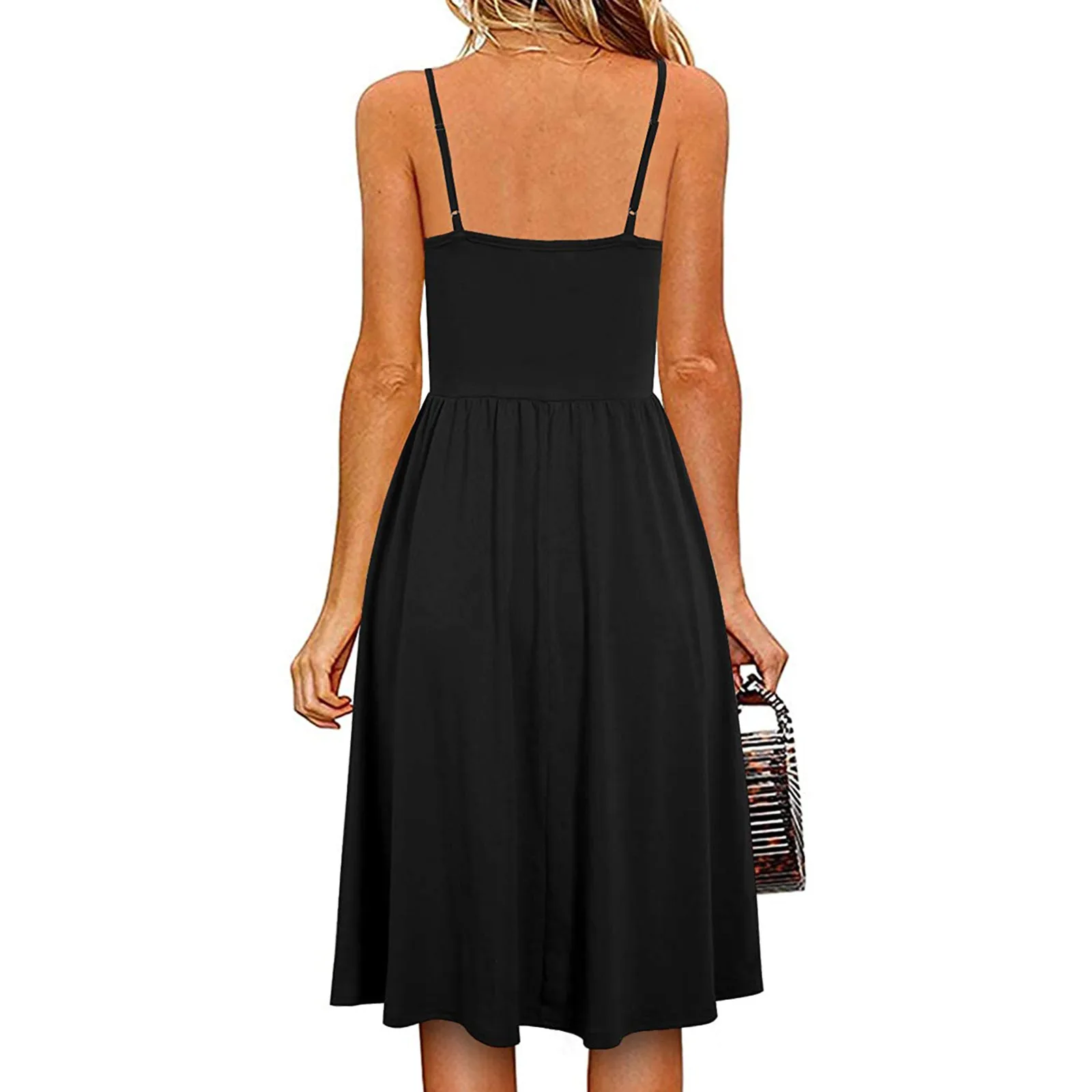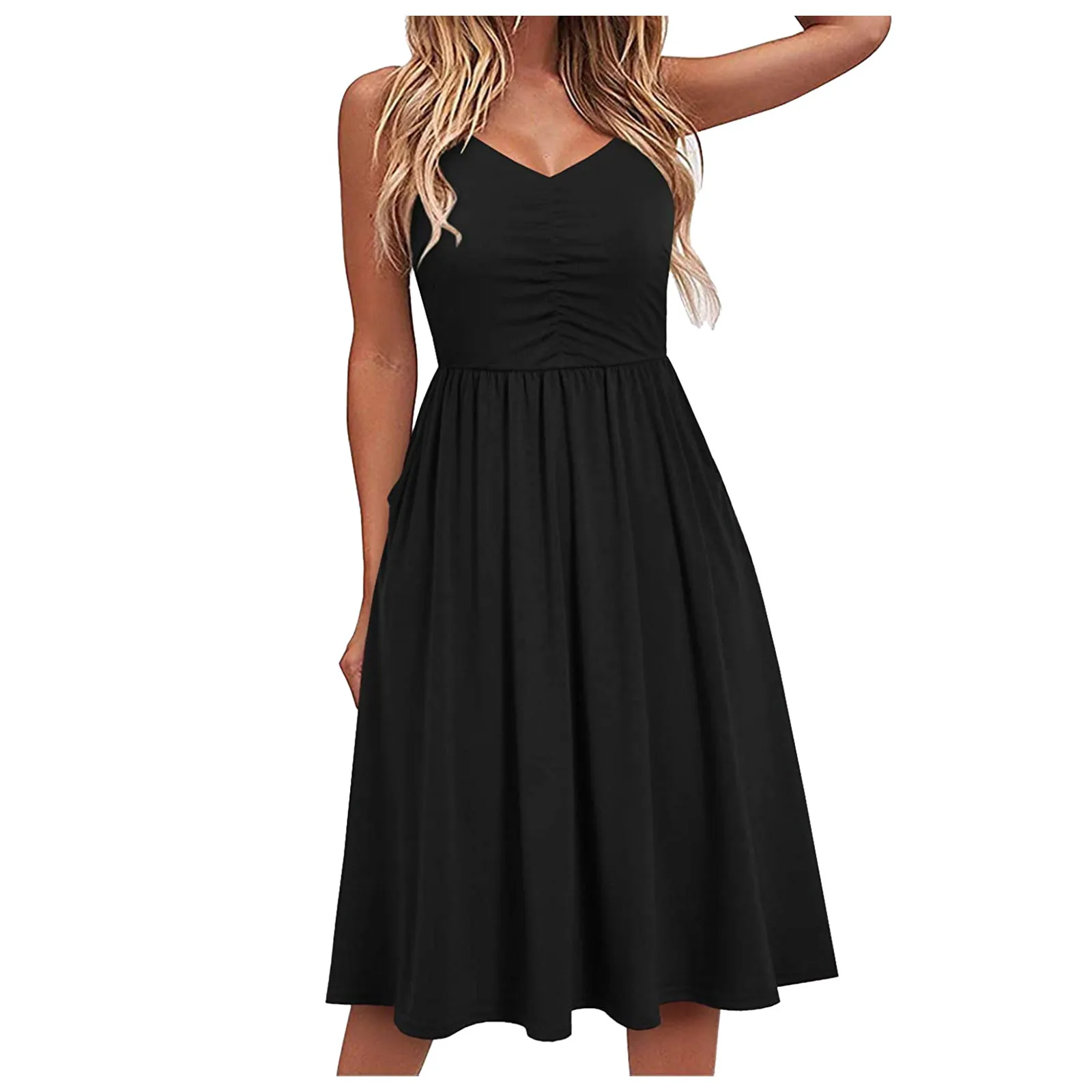 Ladies Elegant Sexy Outfits Summer V-Neck Pure Casual Lace-Up Sling Temperament Knee-Length Dress Party Club Sundress