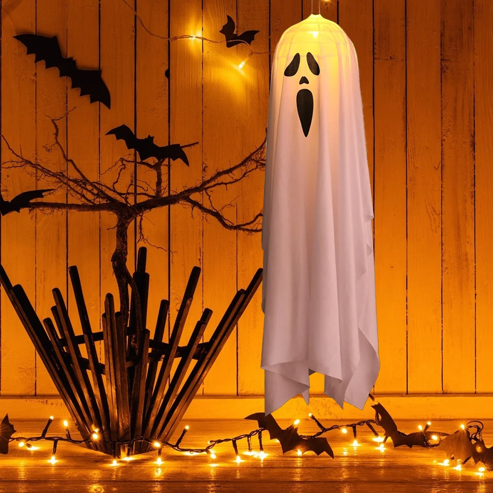 Feature: 1.Halloween Decoration Supplies:These Halloween ghost suitable for Halloween decorations outdoor indoor home garden front yard, tree, balcony, flag poles, lamp posts, lawn, home, window, front porch, and etc. Halloween Spooky Party Supplies, Halloween events decorations, Halloween trick or treaters decor, Halloween night activities, Halloween Ghosts Party decorations. With spooky or gory decoration, perfect for outside Halloween display, suitable length for the front porch or tree limbs. 2.Comfortable Material:The ghost hanger is made of polyester with inner wire core. These wired fabrics are ghost friendly and not scary, but will definitely add to the spooky feel and satisfy the Halloween sensibilities. The LED lights are made of copper wire and are waterproof. 3.Easy To Hang:The led light Halloween ghost add a spooky and scary atmosphere for your Halloween parties. Each Halloween Ghosts hanging windsock is secured with a clip for easy hanging anywhere, place it on the parties, Halloween outdoor decorations, front yard, drain pipe, garden and yard. Lightweight to fly in the wind. The light can be off with switch at the side party. 4.Ideal Gift:It can be used as a birthday gift or holiday gift for relatives, friends, brothers and sisters who like to keep aquatic pets. 5.Quality Assurance:We support the quality of the products, if you have any product questions, please contact us in time, we will give you a satisfactory answer as soon as possible.