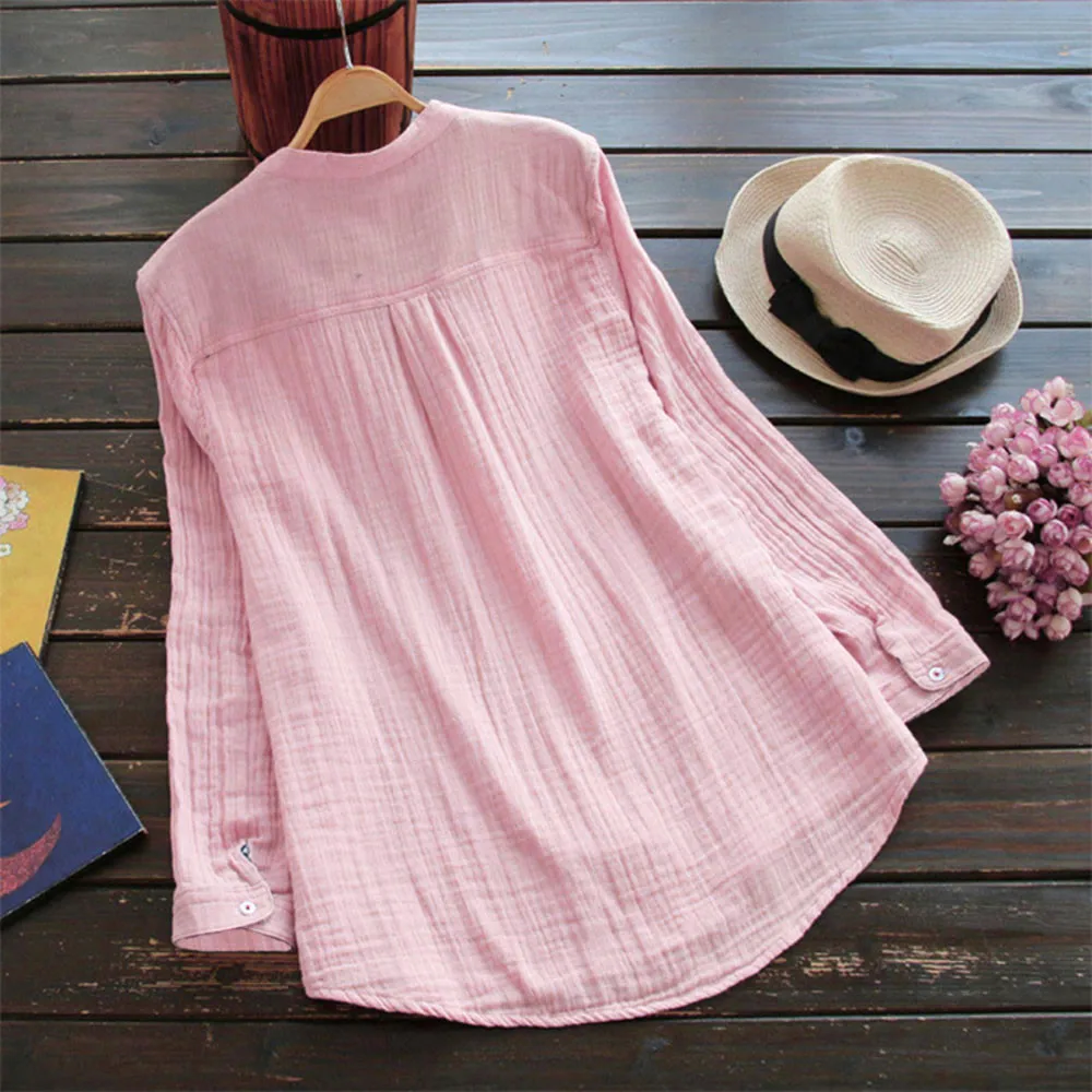 Long Sleeve Casual Loose Tunic Tops Shirt Blouse Women Stand Collar lady blusas Elegant Korean Clothes Roupas Feminina 2018