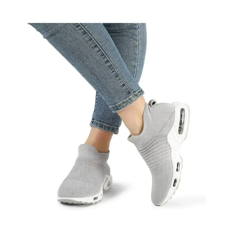 Lovely Grey Mesh Air Cushion Slip on Sock Sneakers Size 6-10, Breathable Comfort for Your Feet