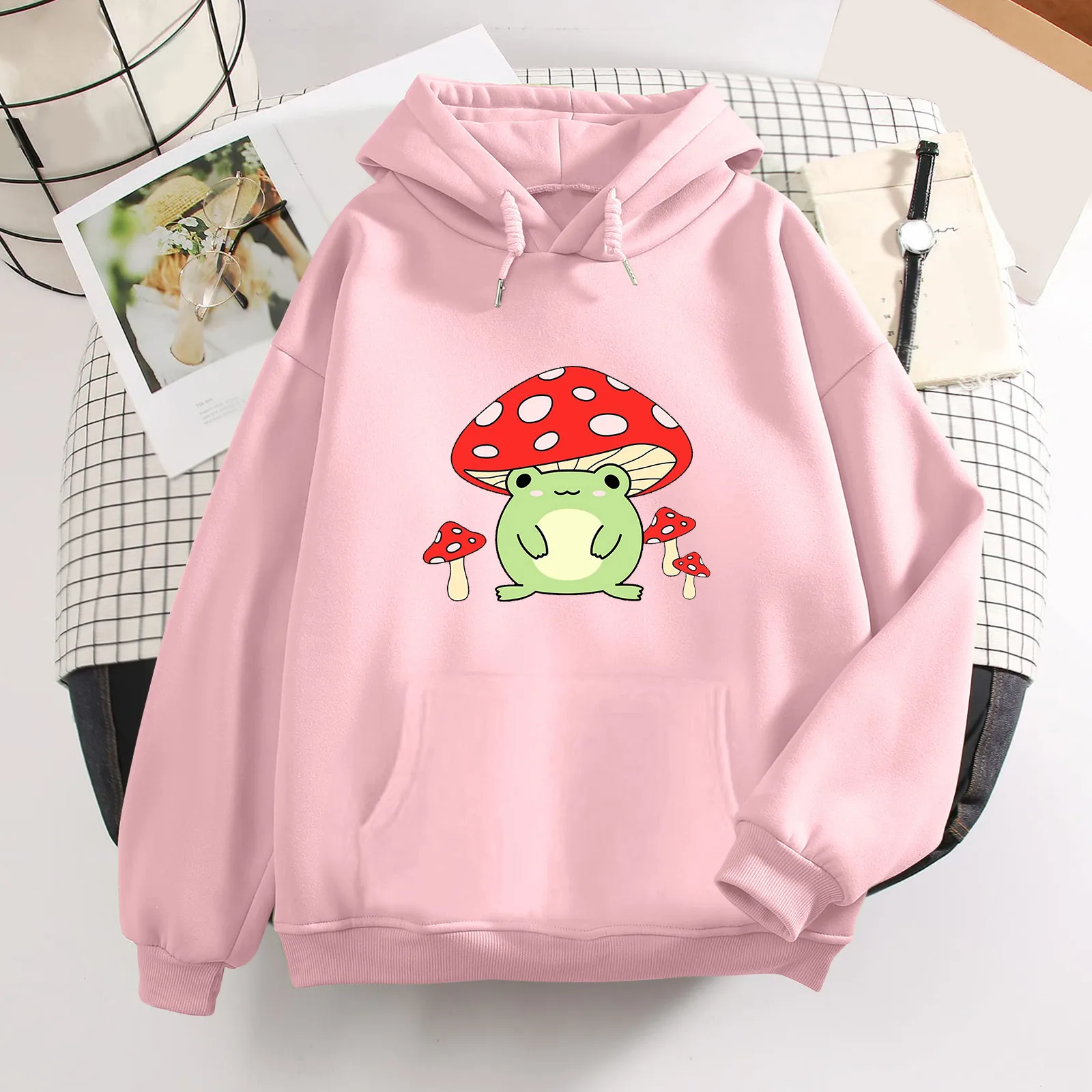 Mushroom Frog Hoodie Vintage Harajuku Women’s Winter Hoodies Kawaii Casual Streetwear Aesthetic Oversize Top Green Sweatshirts