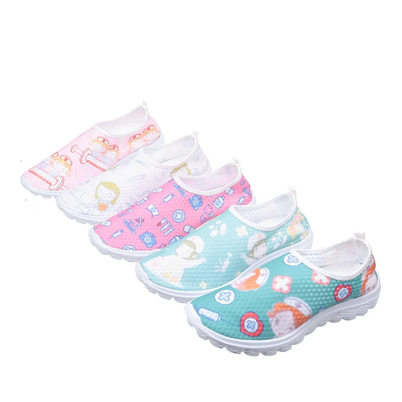 New Cartoon Nurse Doctor Print Women Sneakers Slip on Light Mesh Shoes Summer Breathable Flats Shoes patos Planos