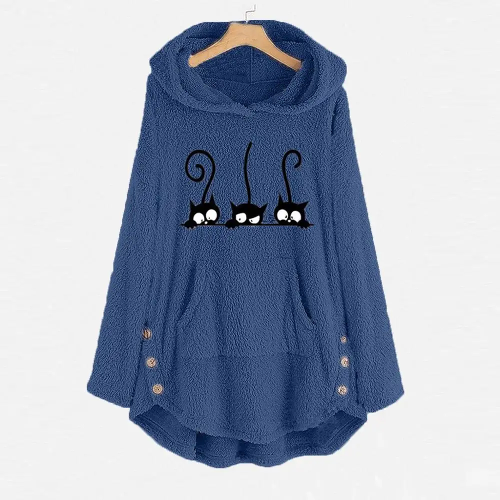 Specification: Oversize Hoodie Womens Fleece Teddy Hoodies Cat Print Warm Hooded Pullover Top Sweatshirts Jumper Women Hoodie Sweatshirts 2023