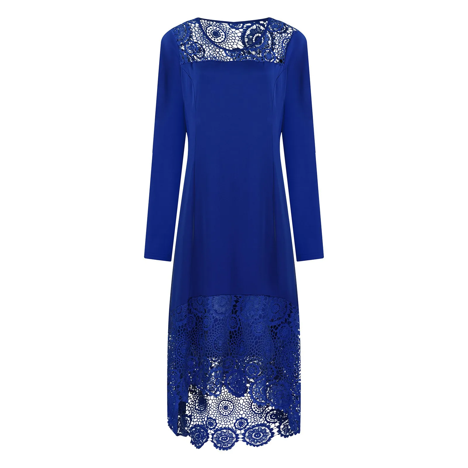 Specification: Oversized Dress Women Party Plus Size Lace Casual Solid Dress Long Sleeve Irregular Stitching Long Formal A-Line Dress Vestidos