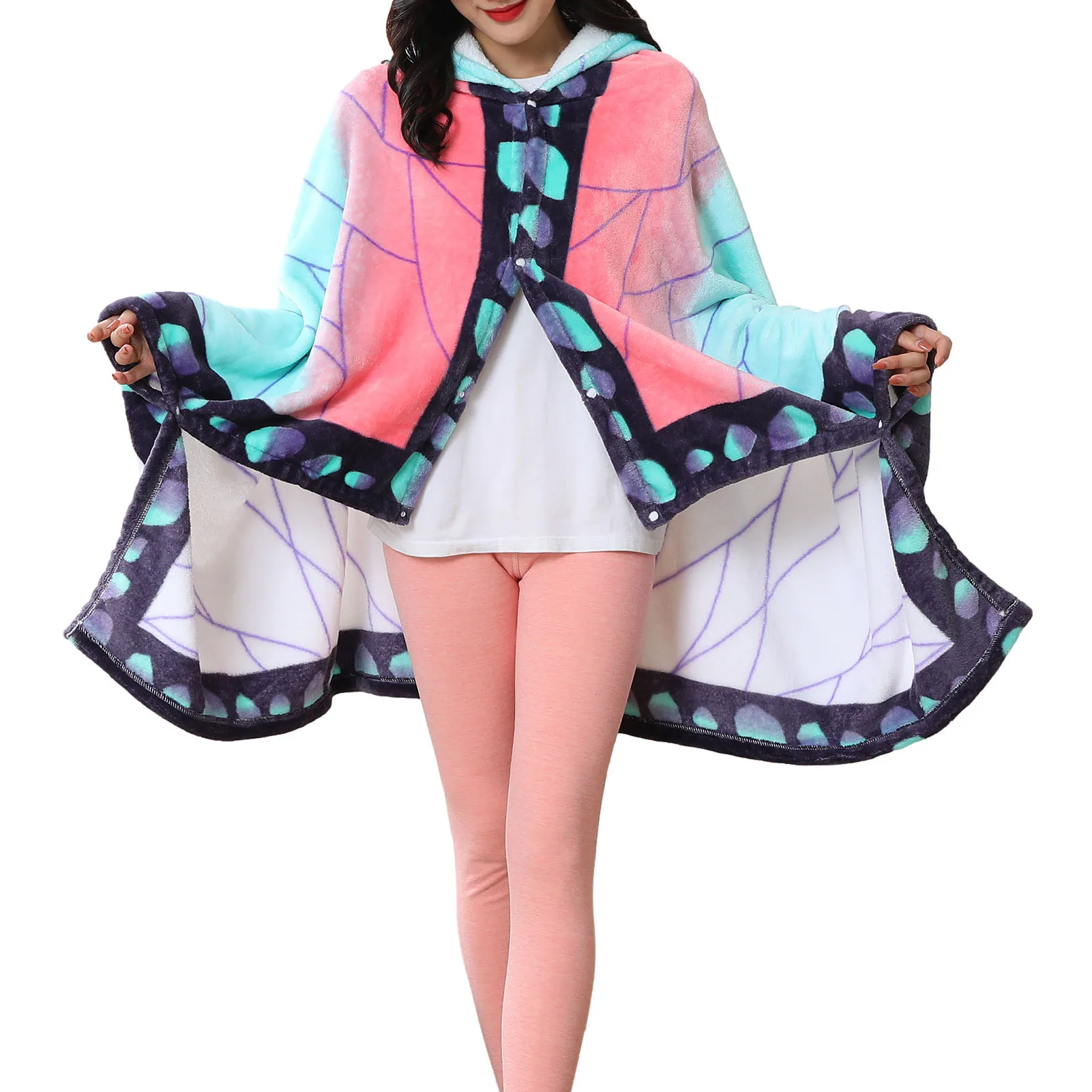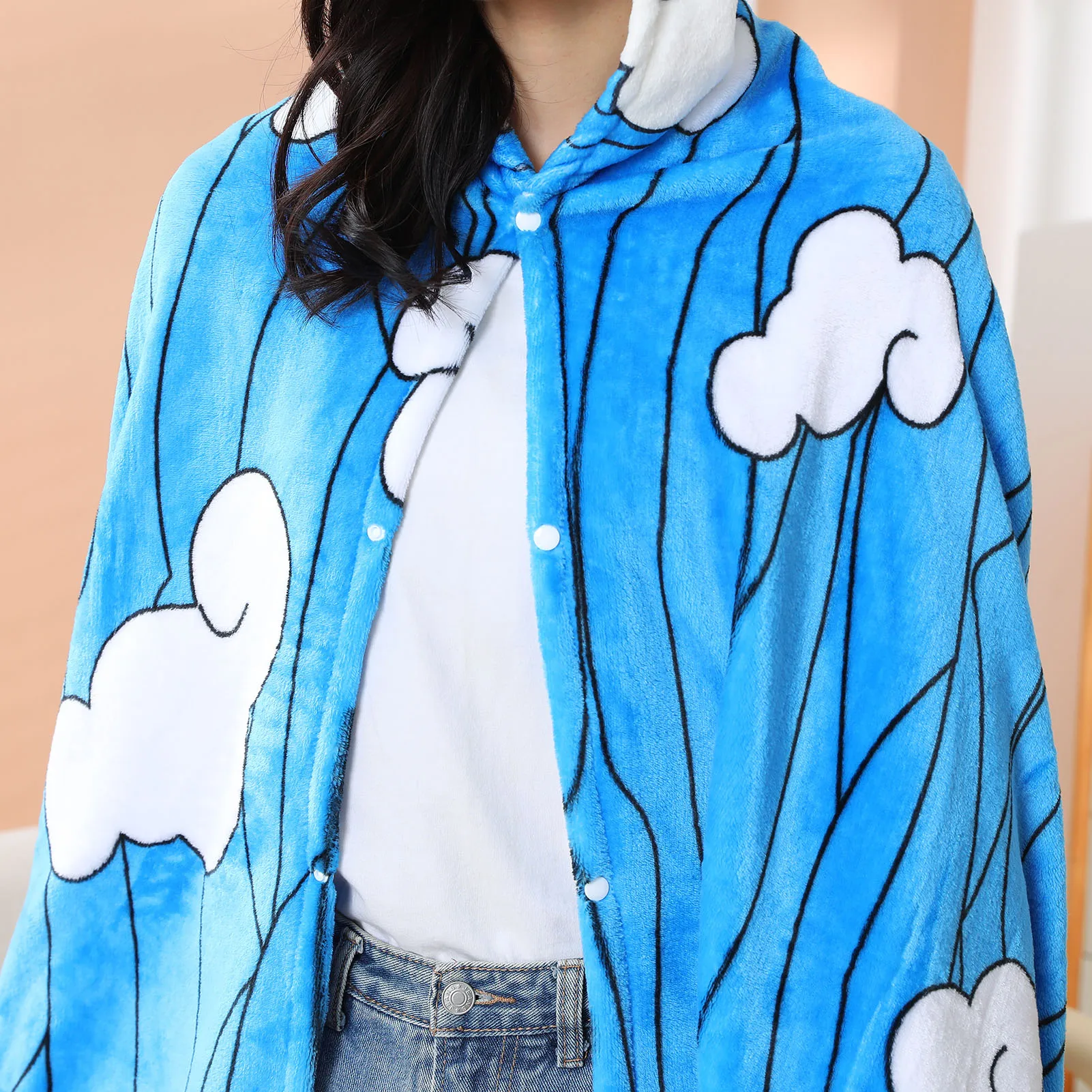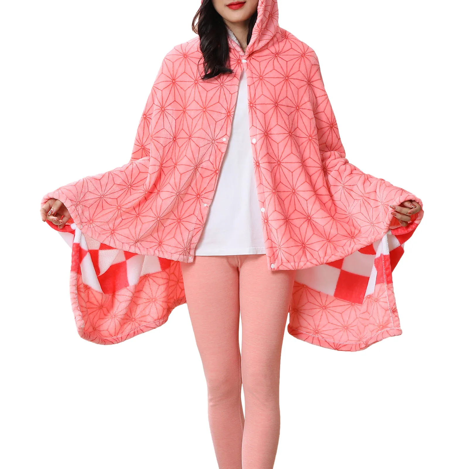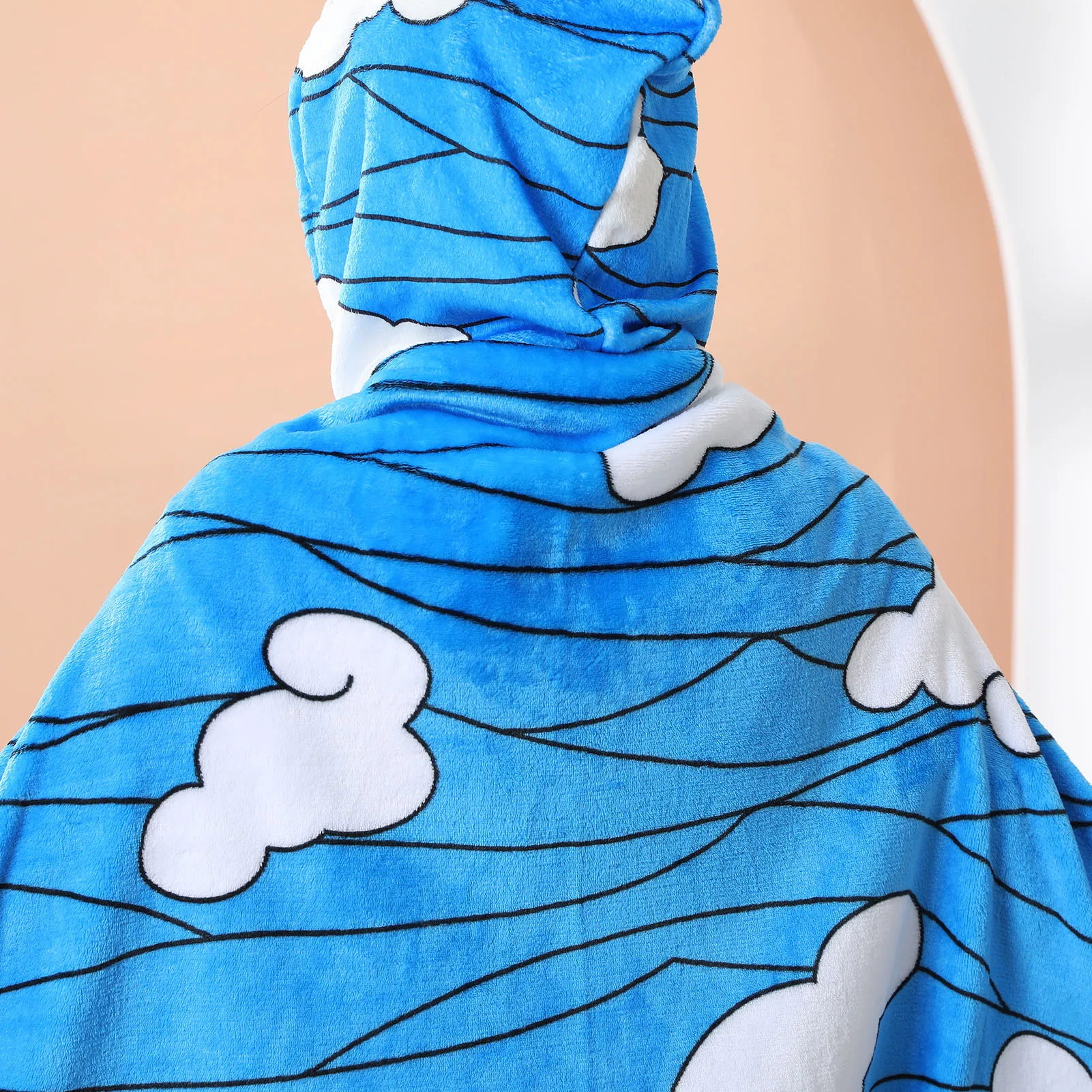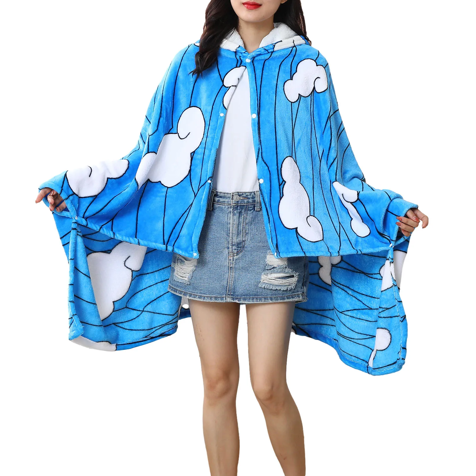 Oversized Hoodie Blanket Giant Warm Soft Flannel Wearable Hooded Bathrobe with Buttons for Girls Women Men Adults Teen Family