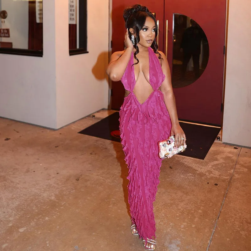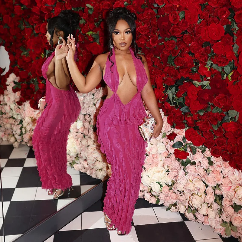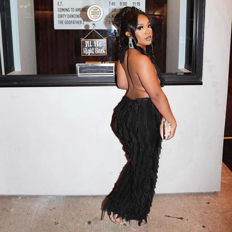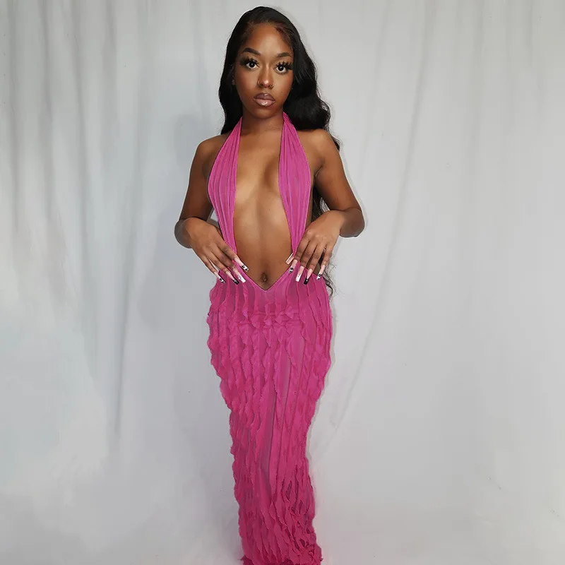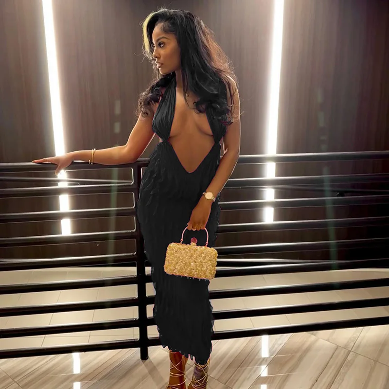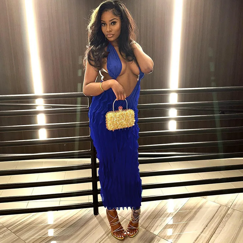 Be the first to review “Perl Sexy Raggedy Hollowed-out Halter Wrap Hip Dress for Women Spice Slim-fit Backless Party Dress Night Club Wear”