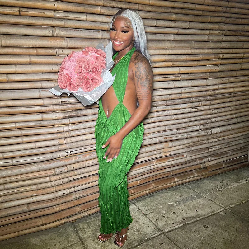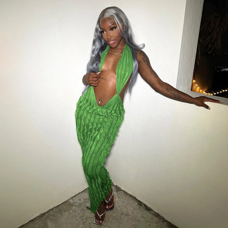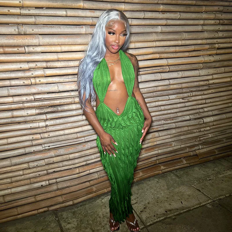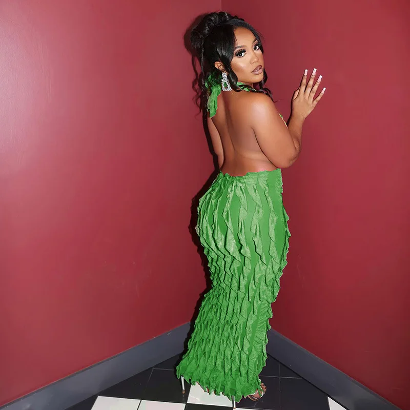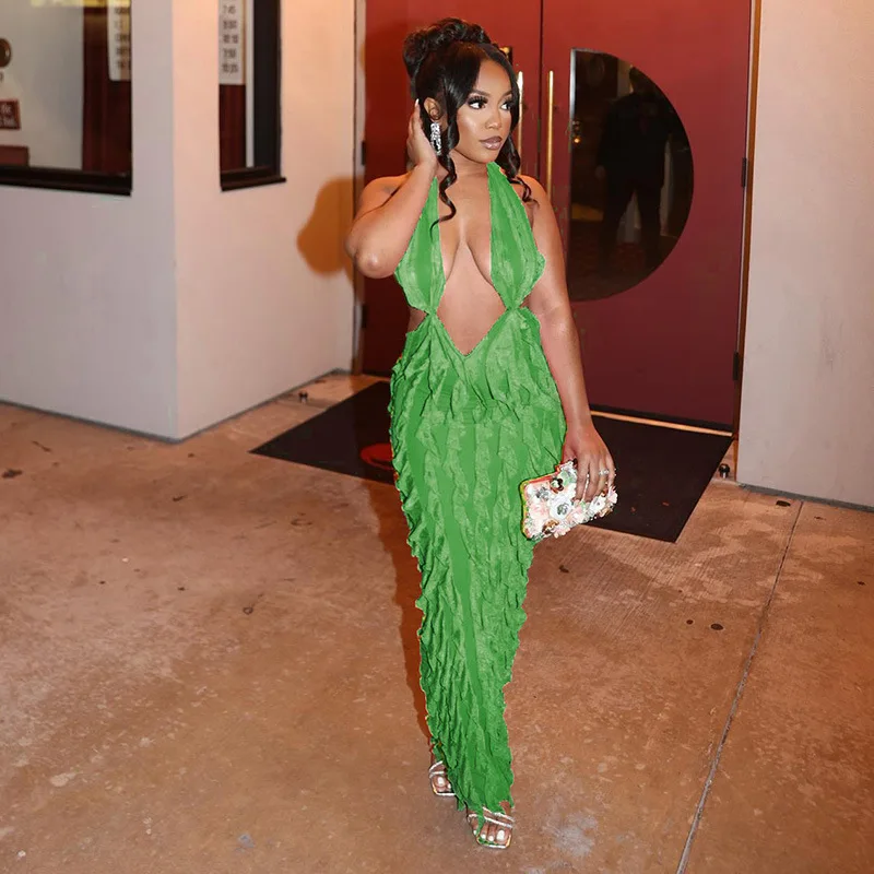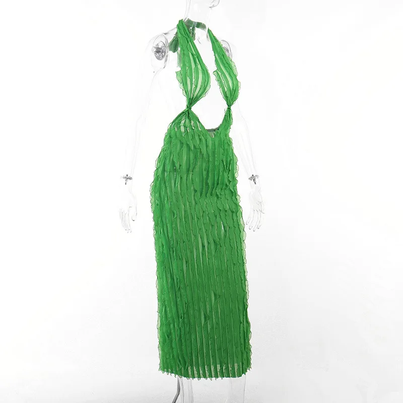 Be the first to review “Perl Sexy Raggedy Hollowed-out Halter Wrap Hip Dress for Women Spice Slim-fit Backless Party Dress Night Club Wear”