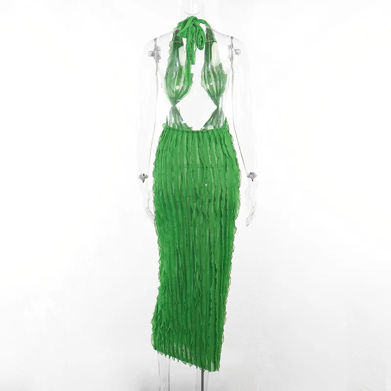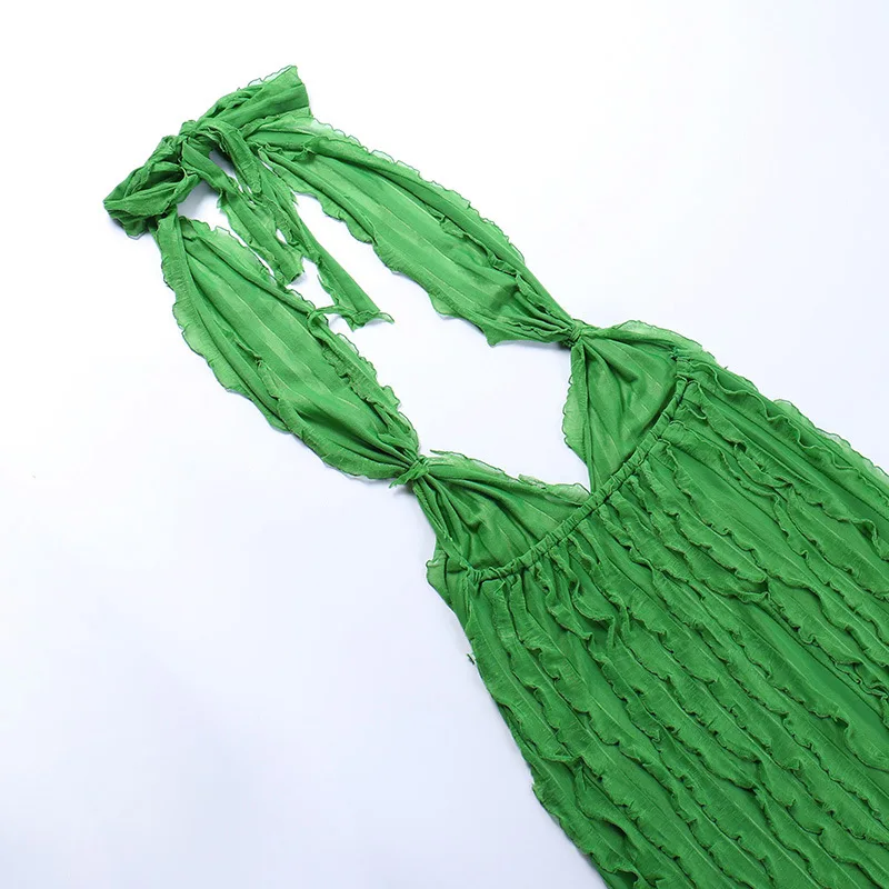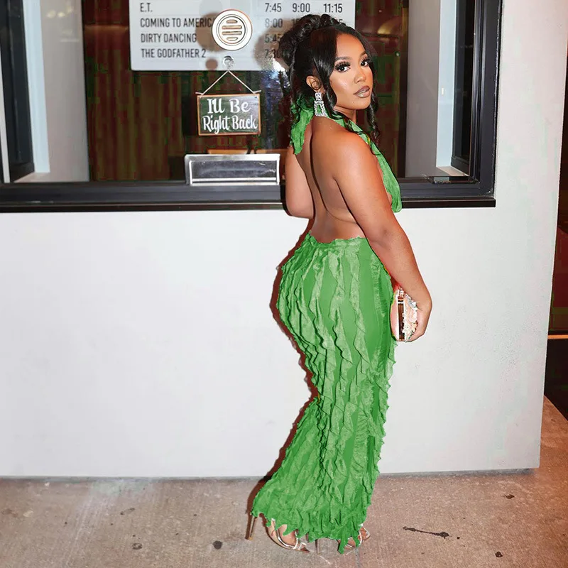 Perl Sexy Raggedy Hollowed-out Halter Wrap Hip Dress for Women Spice Slim-fit Backless Party Dress Night Club Wear