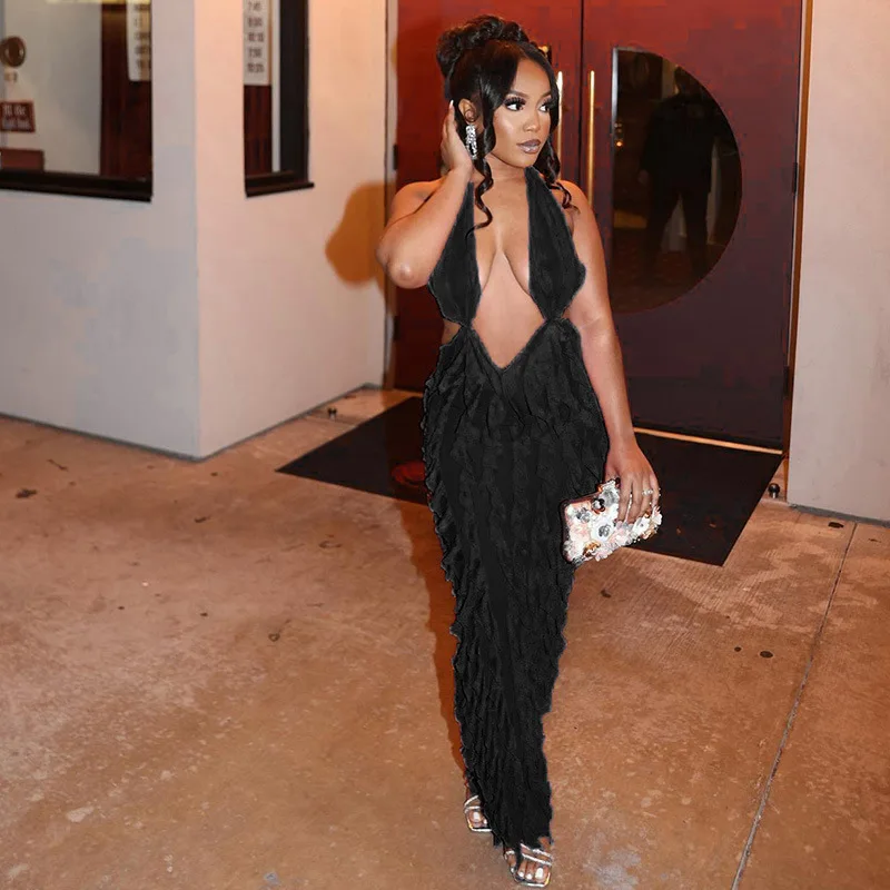 Specification: Perl Sexy Raggedy Hollowed-out Halter Wrap Hip Dress for Women Spice Slim-fit Backless Party Dress Night Club Wear