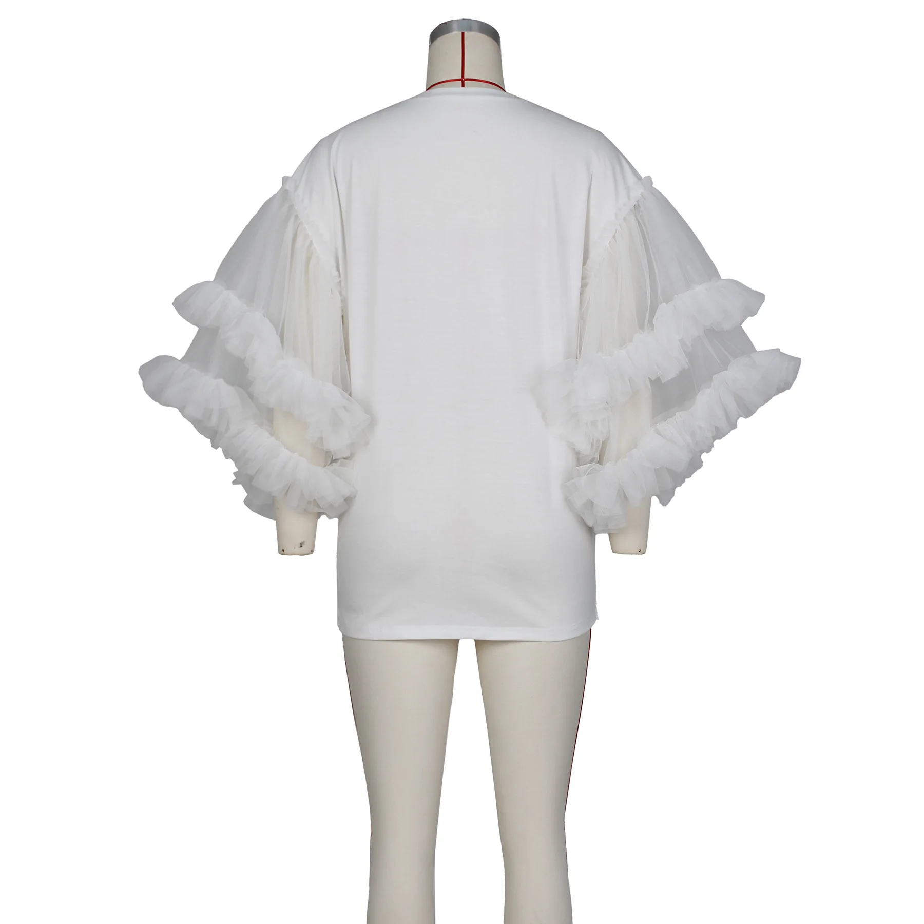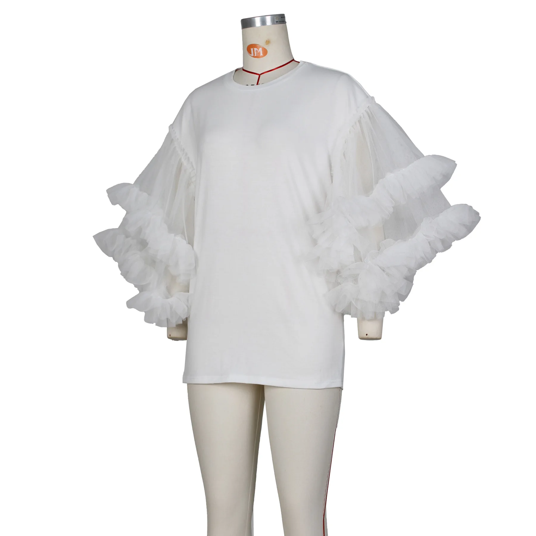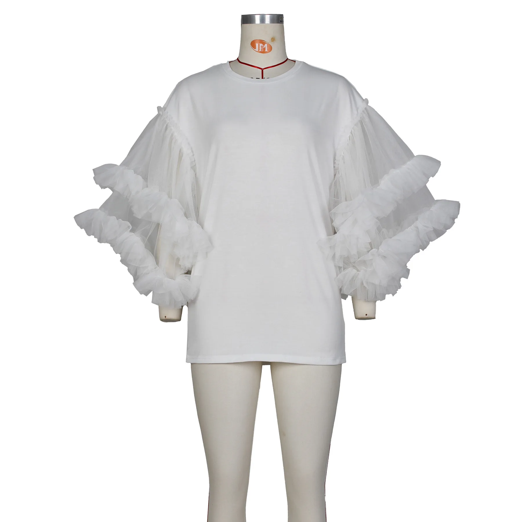 Specification: Perl Women Mesh Ruffles Flare Long Sleeve Patchwork O-neck T-shirt Style Dress 2023 Street Fashion Vestidos Evening Dresses