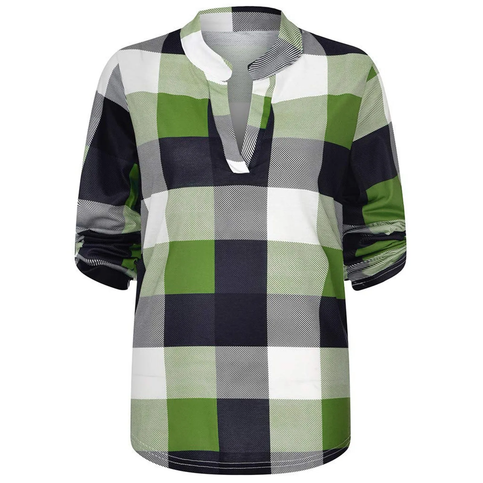 Specification: Plaid Print Women Blouses V-neck Autumn Shirts All-match Long Sleeve Loose Casual Harajuku Female 6 Colors Chic Slim Top New #F