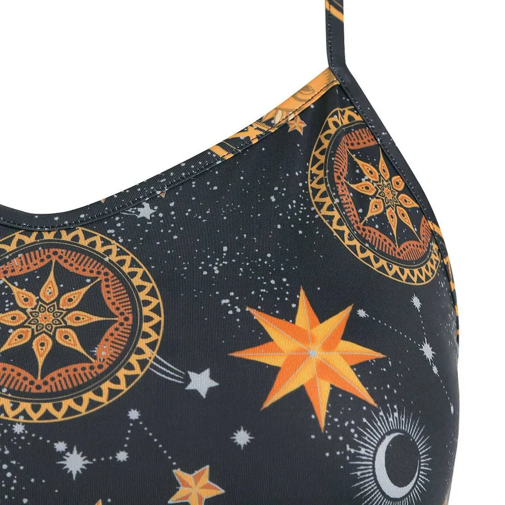 Plus Size Dresses for Women Gothic Sun Moon Print Spaghetti Strap Dress Girls Sleeveless Boho Beach Party Dress Sundress 5XL
